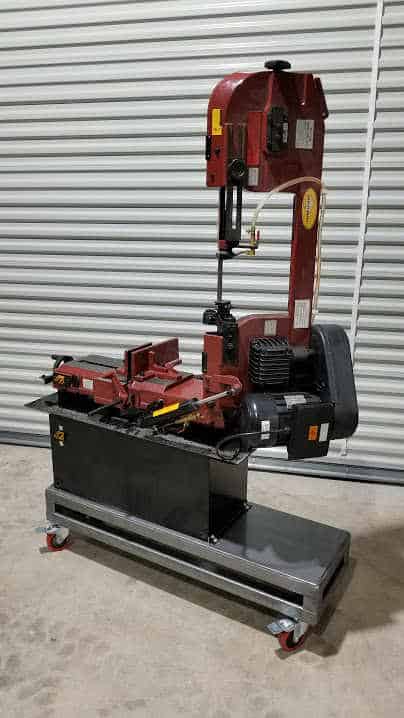 Bandsaws like this can be had at Northern Tool, Harbor Freight, or even Amazon. But one universal problem is that even though they’re supposed to be semi-portable, the wheels on the stock bases are unidirectional. So you can’t really move them around without having to physically pick one end up. And they weigh hundreds of pounds.