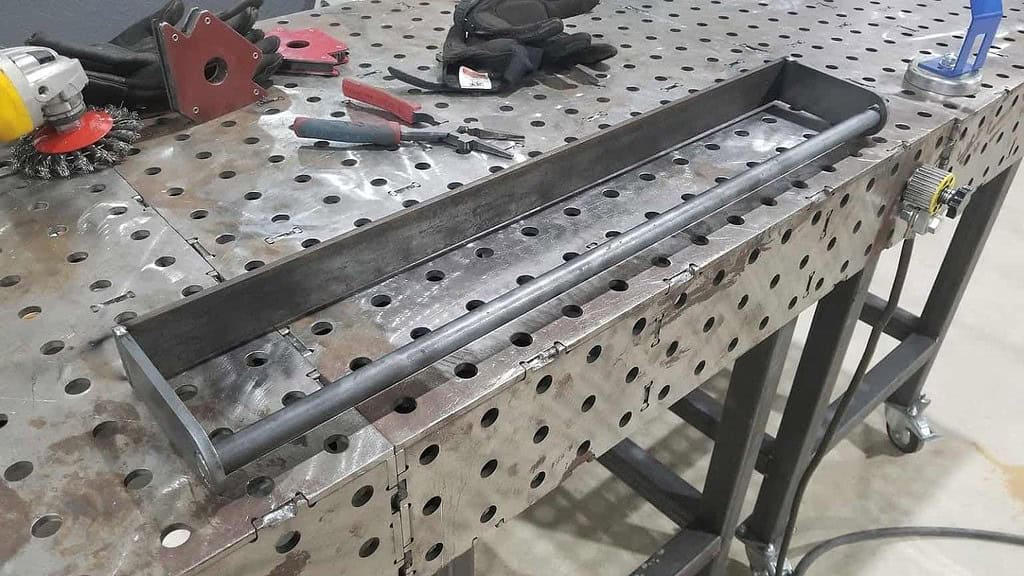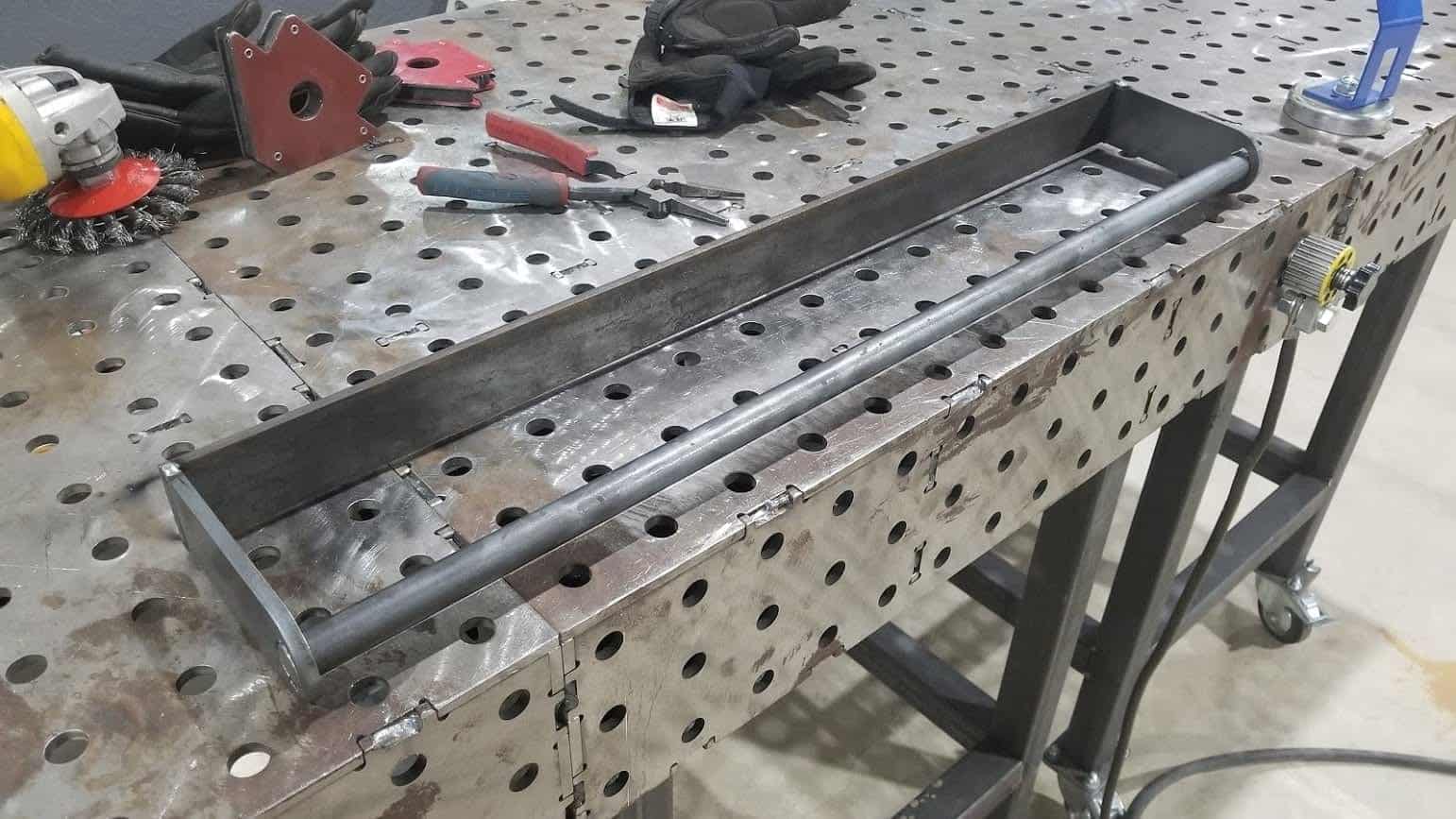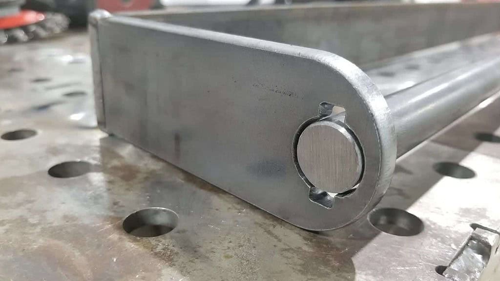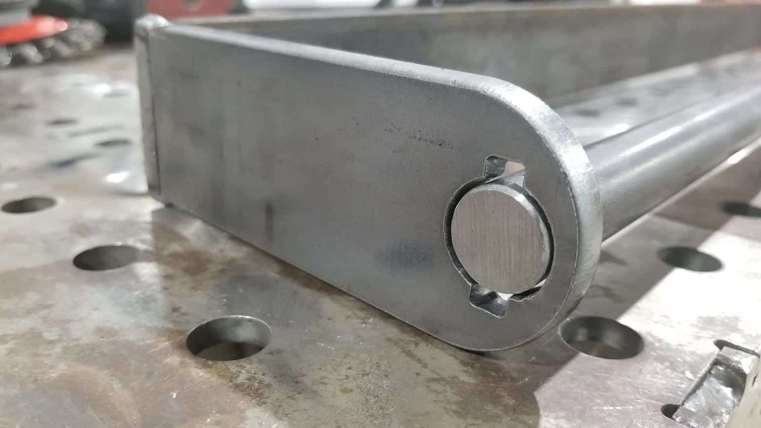 This simple build began with a set of custom CNC cut plates made from 1/4″ steel. The plates had 3/4″ holes to accommodate a solid bar, plus small welding tabs on either side of the holes.