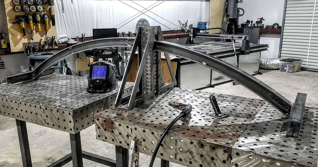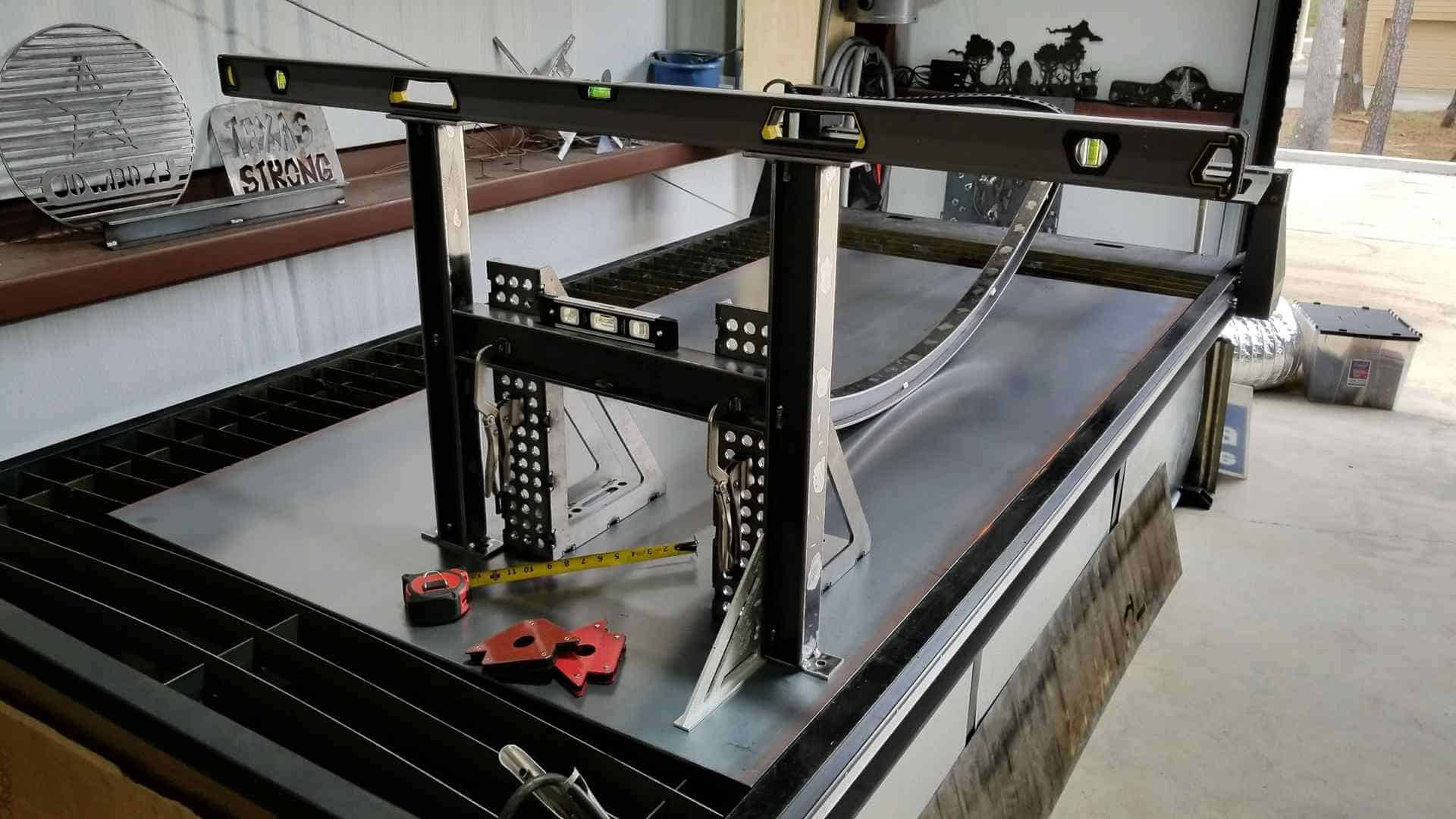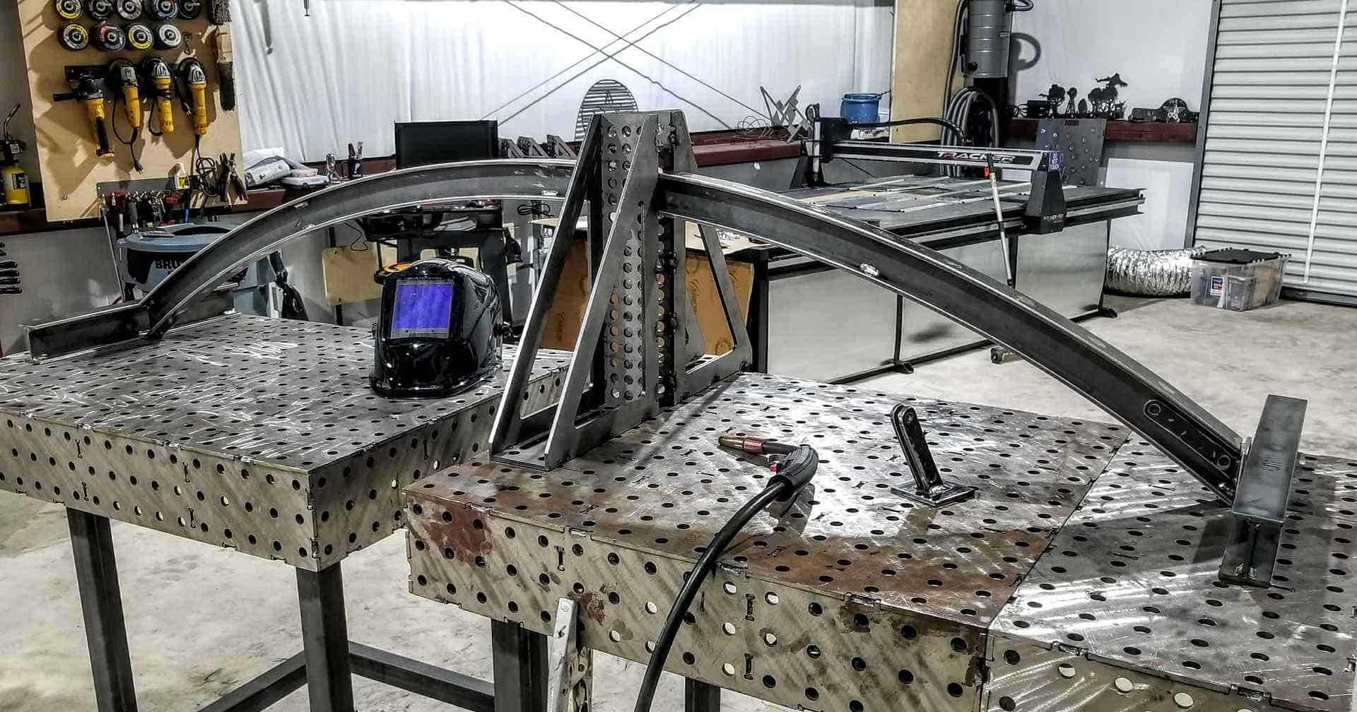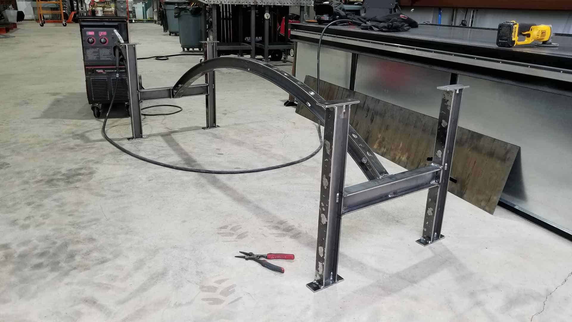 Just like the straight beams, the arch needs jigs to make sure everything is lined up prior to welding.