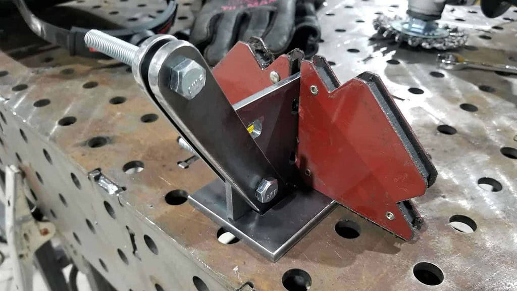Once welded, you can see how the mount sticks out from the center of each end between the legs.