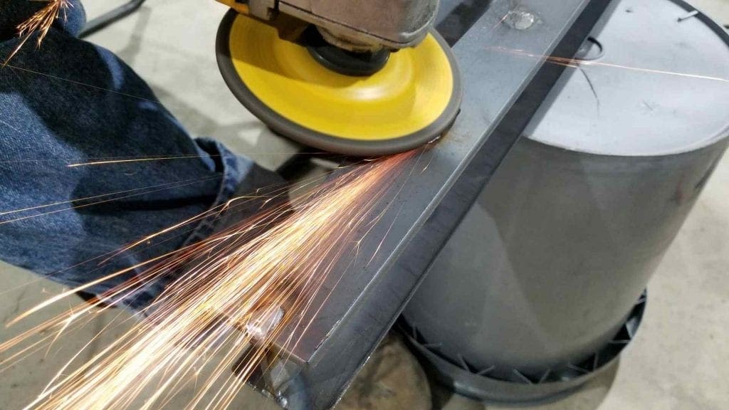 If you noticed in the previous photo, the parts had square slots cut into them. These slots allow the parts to be welded together, then the holes are filled with weld material which has to be ground flat.