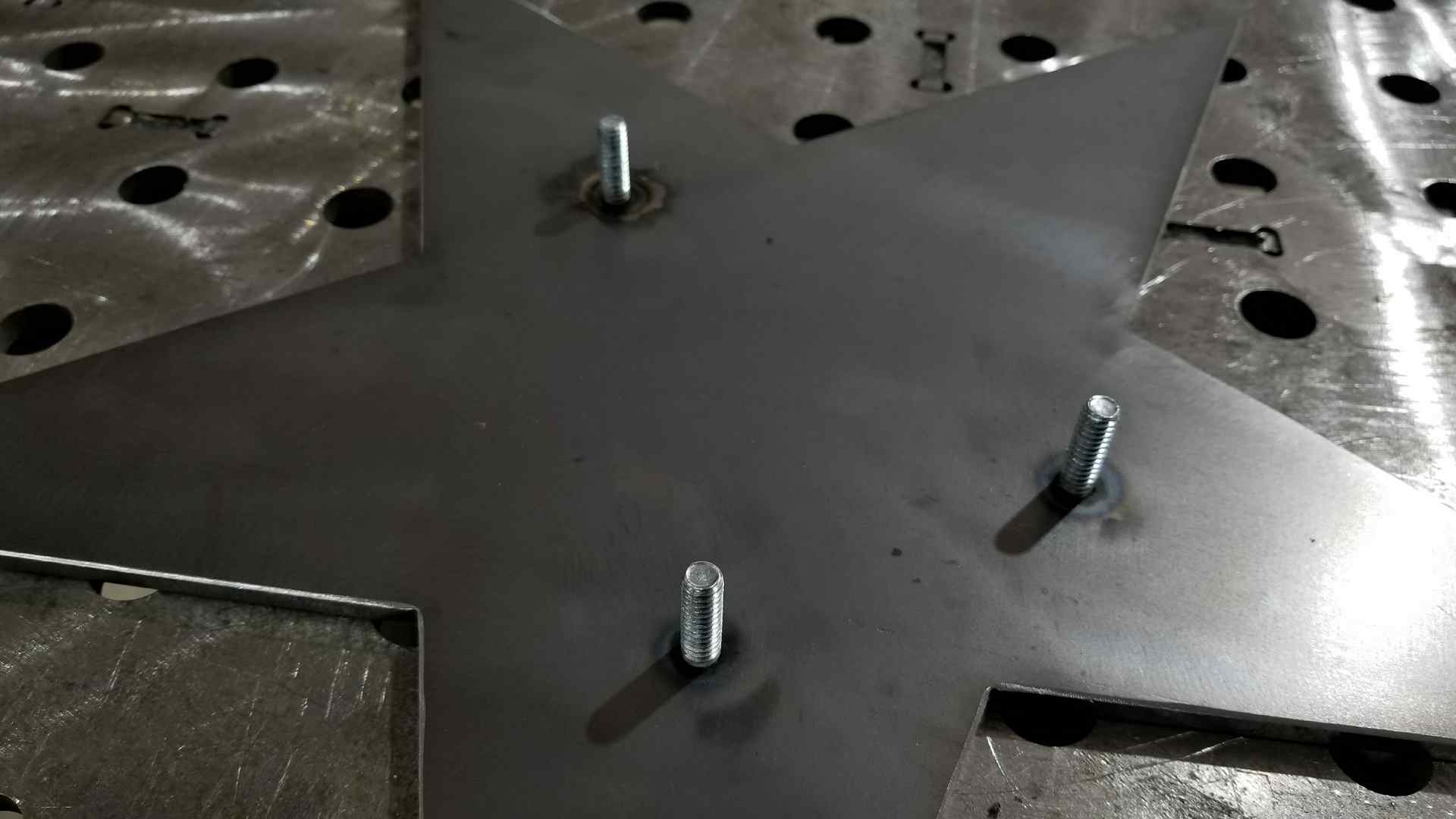 The stars themselves were made to be removable by welding posts onto the back that correspond with CNC cut holes in the round base plate attached to the legs.