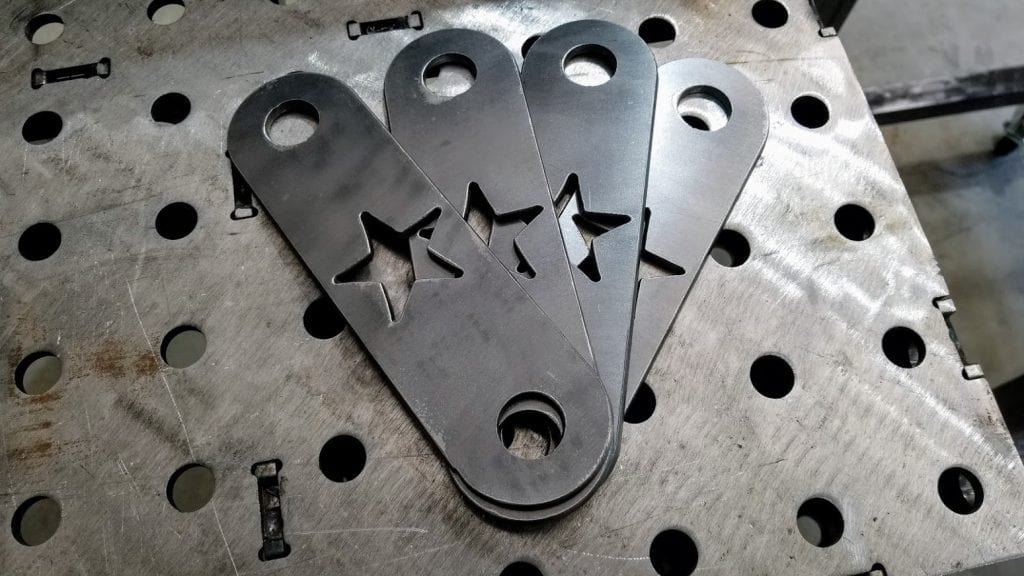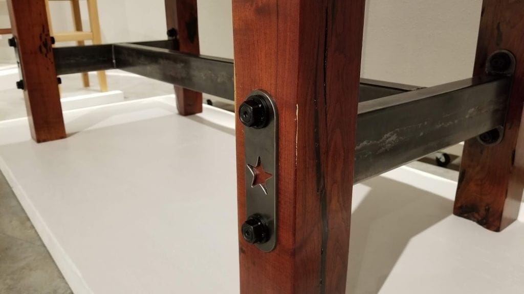 Since the support would be bolted directly through the legs another set of plates was created to sit on the outside of the legs to ensure the bolts would never pull through. They also serve as a decorative accent.