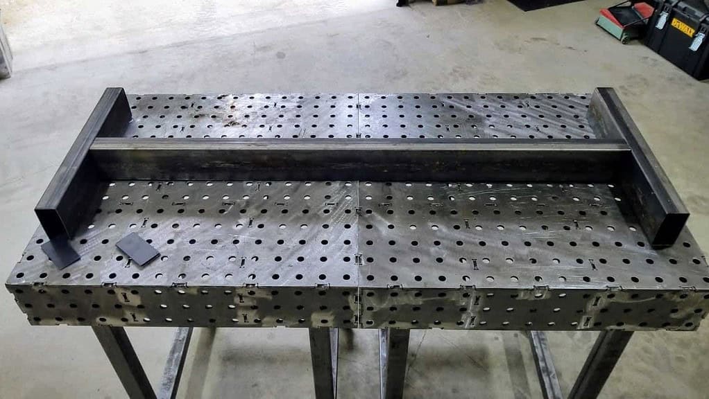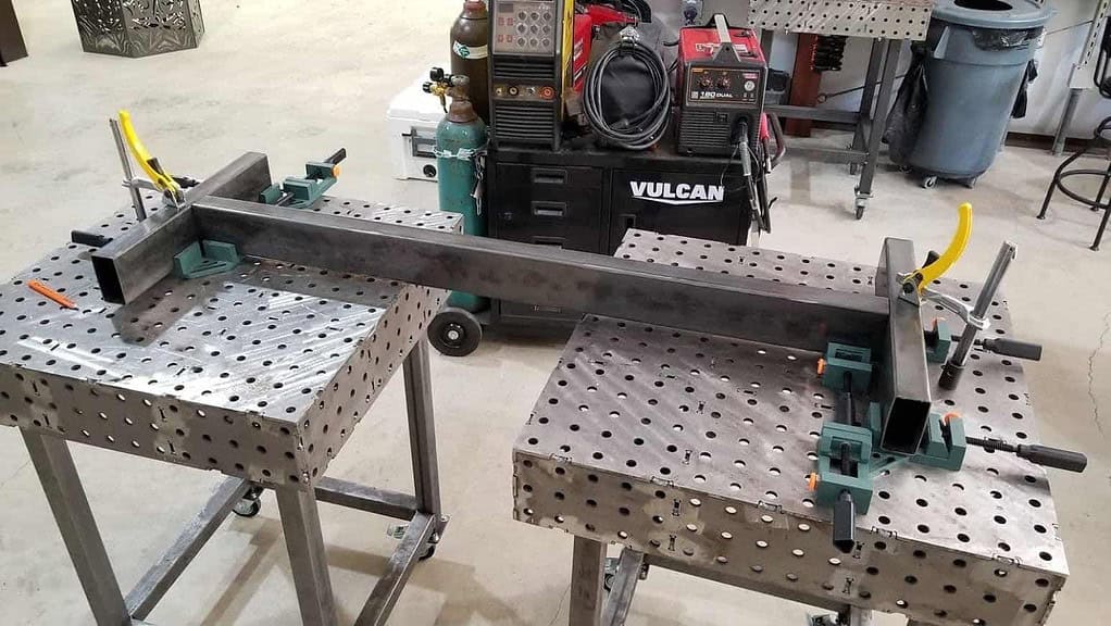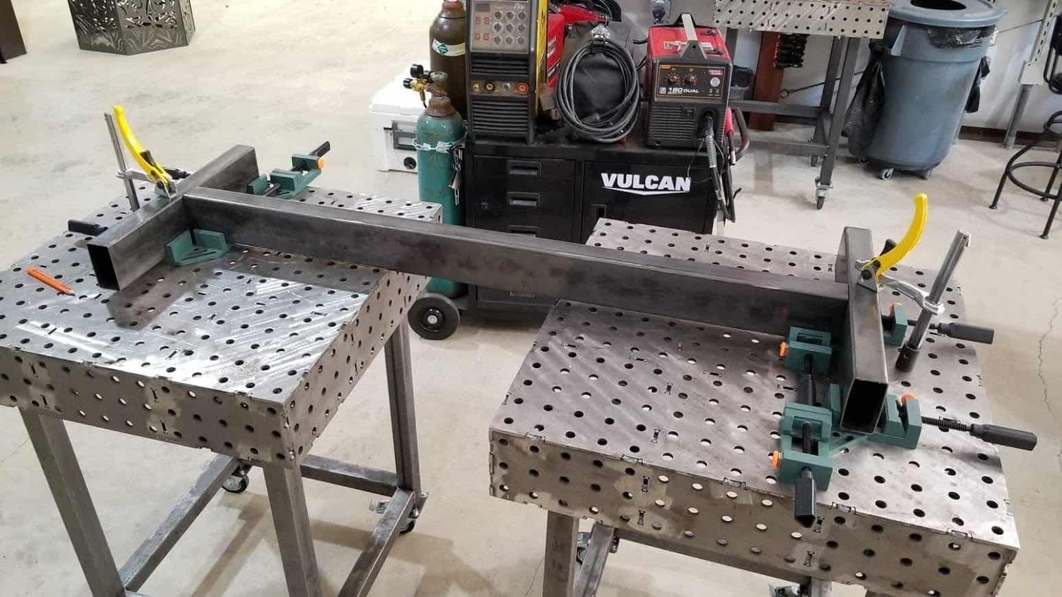 The tubular steel was placed in 90 degree jigs to ensure everything came out perfectly perpendicular, then the pieces were welded in place.