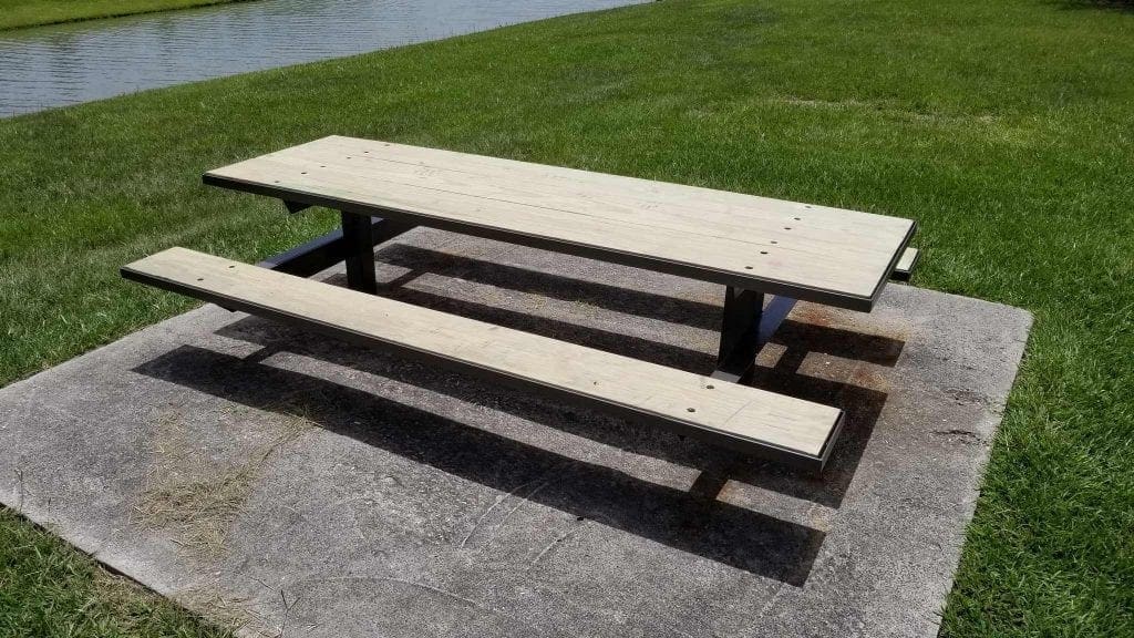 A little while back we had the opportunity to redesign and refurbish the old picnic tables at a local park. The old tables had a nice concrete base firmly planted in cement, but they had extremely weathered, rusty and downright dangerous expanded metal surfaces that were desperately in need of replacement!