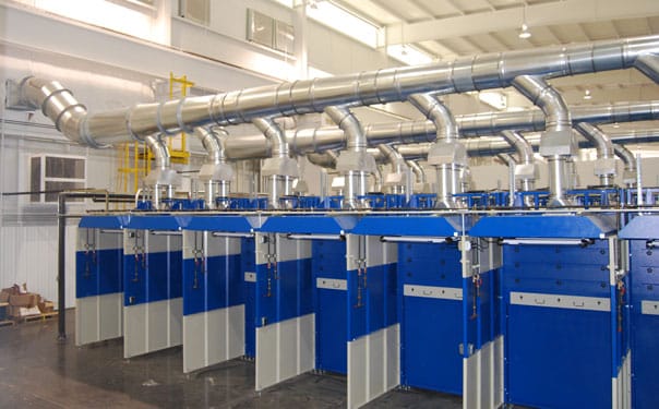 - With an individual system, the fume extraction arm is generally mounted directly to the fan motor and air filter box. It’s a 1:1 ratio. You just hang one in every cell. The advantage here is typically simplicity, however you now have a lot of filters to manage individually.