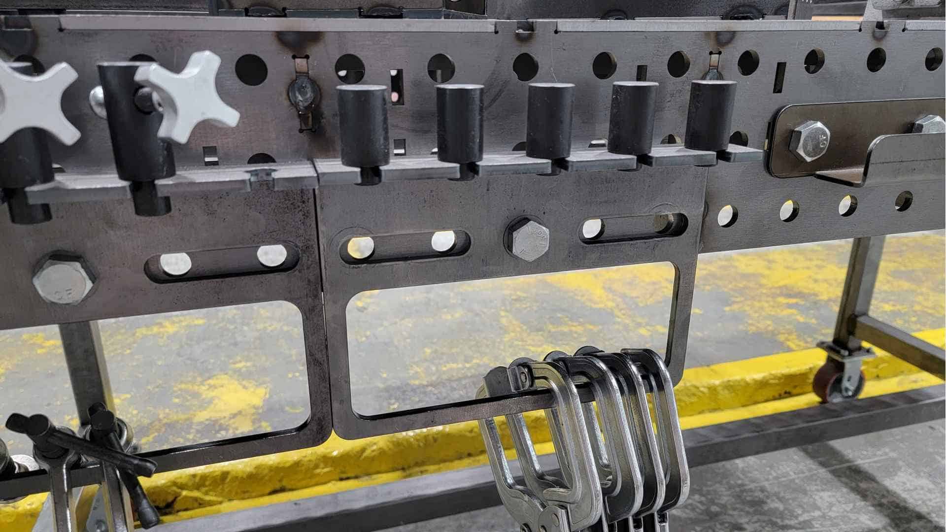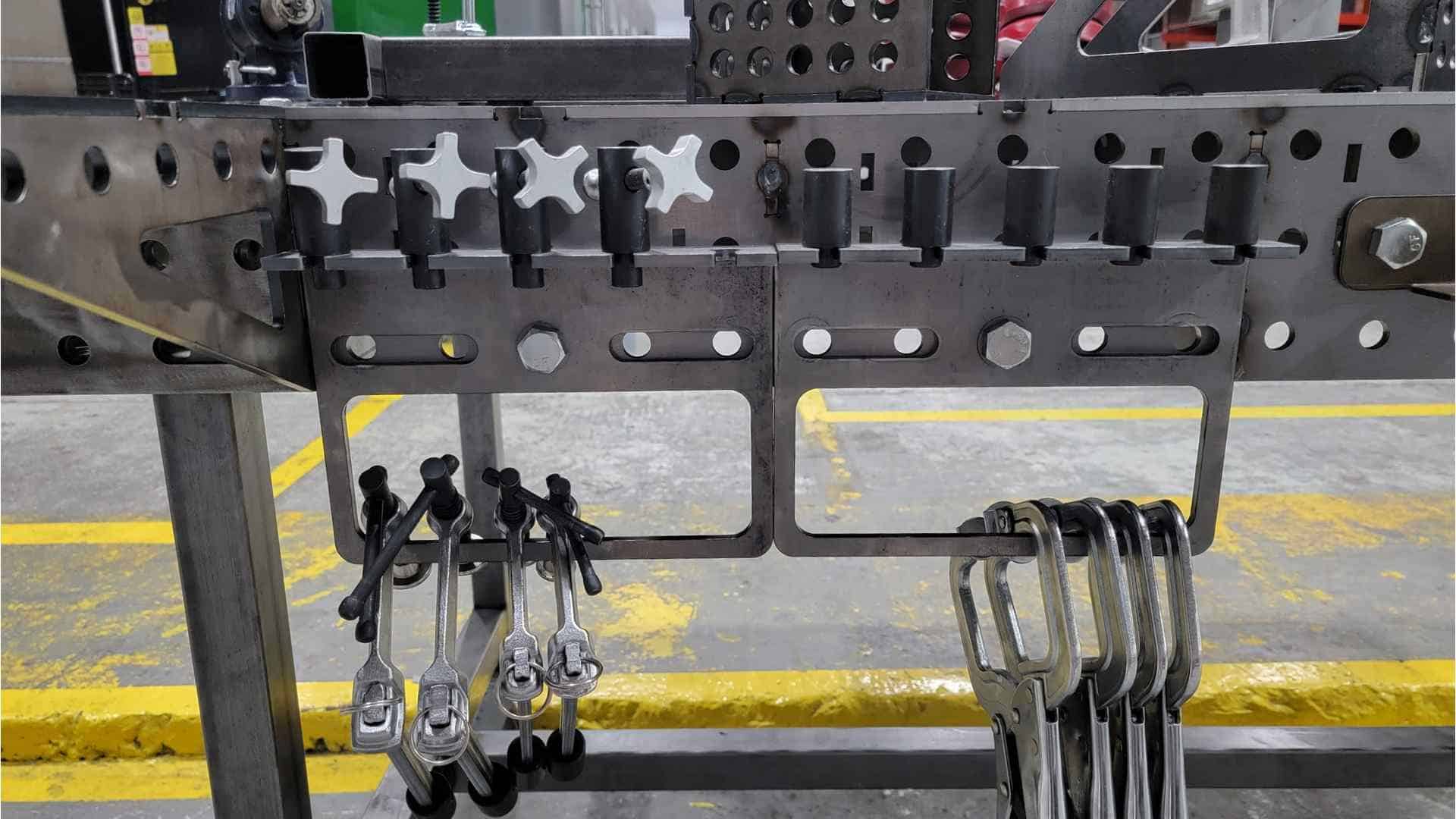 If you stop by our shop, you’ll see a pair bolted onto each of our tables holding our BuildPro 1.5″ Stops, BuildPro Welding Table Side Clamps, 6.5″ Inserta Clamps, 8.5″ Inserta Clamps, and our 11″ Swivel Pad Locking C-Clamps.