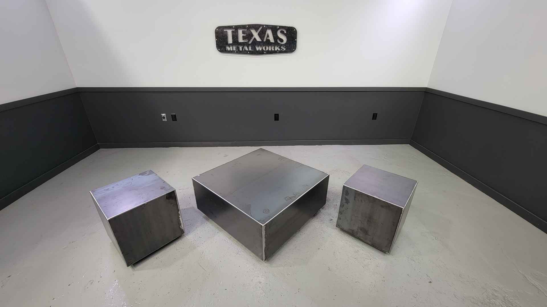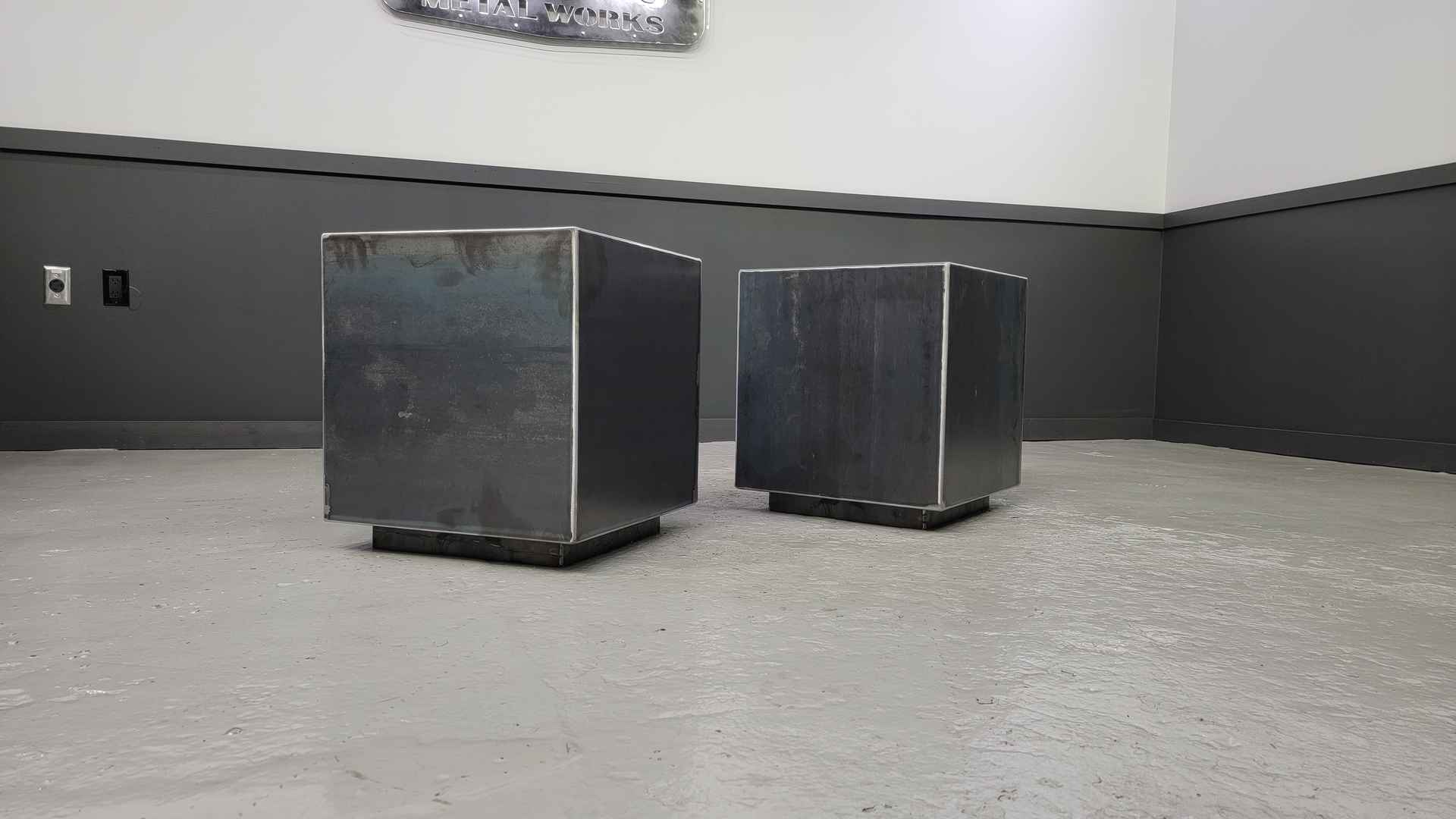 Built to last a lifetime, our bespoke furniture line is hand-fabricated for your industrial, commercial and domestic needs.  This 18" x 18" End Table with straight sides is CNC laser cut from heavy 10-gauge steel plate.  Our craftsmen meticulously hand seam weld all edges and then carefully grind the edges smooth.  Each piece comes with self-leveling feet.  We offer a custom splash of color with our powder coat option.
