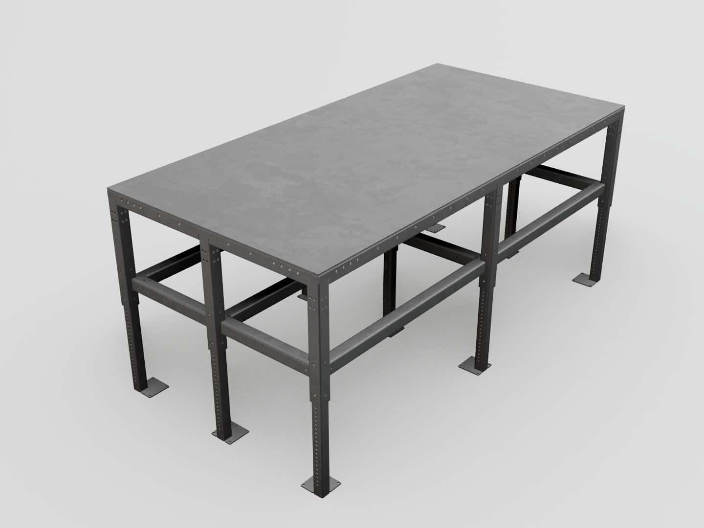 One of the most important features of our workbenches is their ability to attach to one another, as well as accessories. Each table has laser cut holes throughout the tubular legs and cross bracing which utilize the same spacing as all of our welding and fabrication tables. This means that any of our welding table components can be bolted to the side of the workbench, as well as the workbenches being able to be combined into even larger variations.