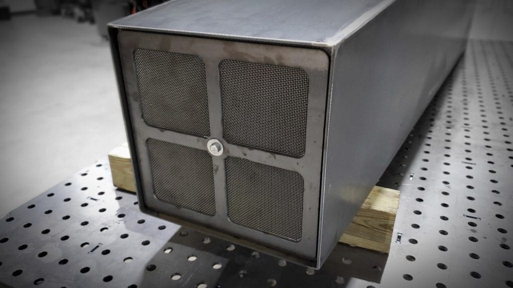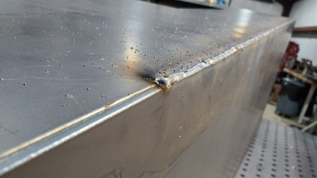 All of the pieces are spot welded together, followed by completely welding 100% of the seams. This product requires over 30 feet of continuous welding!