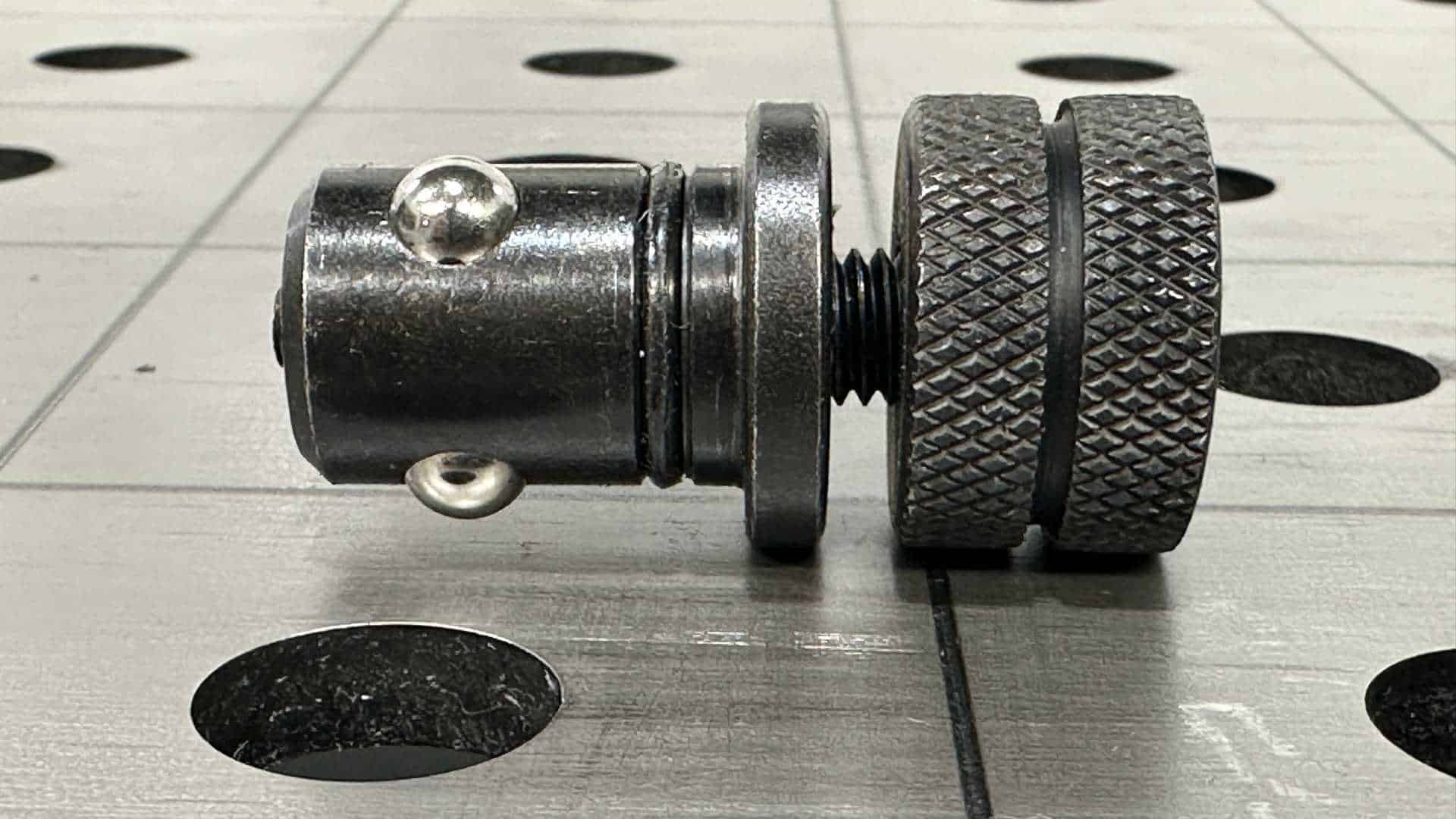 Finally a Ball Lock Pin for 1/4" tables! Save time and effort with this quick-locking fastener. Simply drop in any 16mm (5/8") hole and tighten. No more reaching under the table to thread a bolt! Time-saving Ball Lock Pin secures fixtures, tooling, and more. Measuring: 5/8"-1/2"(16x12.7mm) with Xmm stud height.