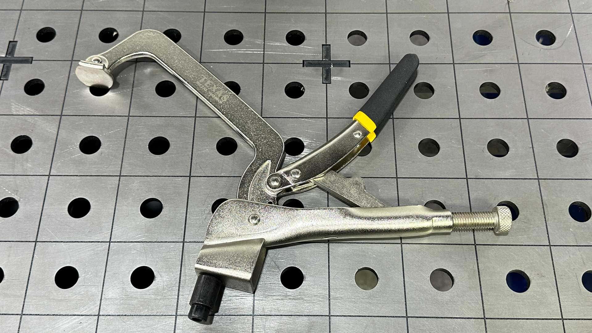 Push-down clamping just got easier with our oversized pliers with 5" throat opening. Simply drop in any 16mm (5/8") hole and clamp down.