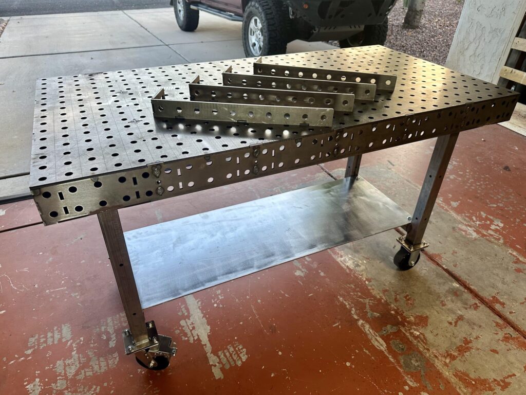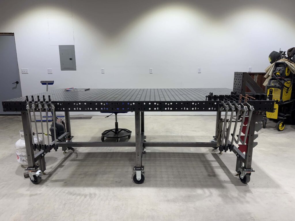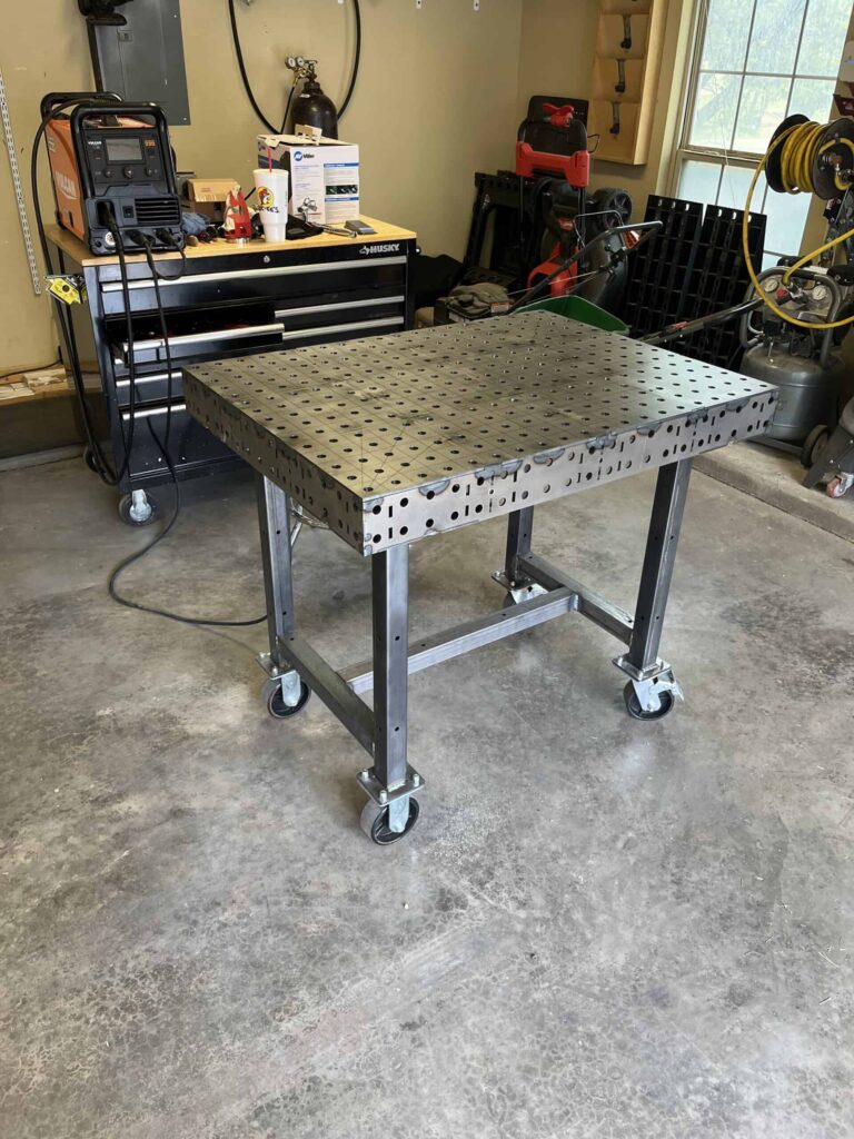 We offer our DIY Welding Table Leg Kits for every size of DIY Welding Table, with either heavy-duty black-on-black casters (1,000 lbs capacity each) or high load capacity leveling feet (4,000 lbs per foot). So don’t forget to pick up the leg kit to complete your project.