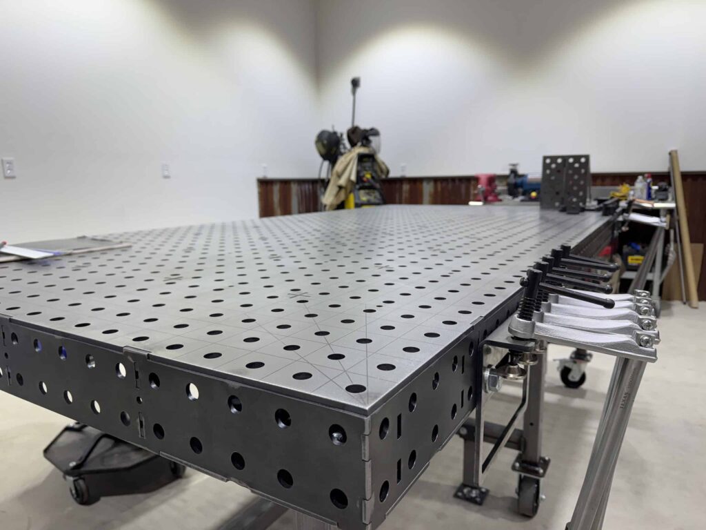 We’re using ¼” thick A572-50 grade steel on our top plates, just like our factory-built heavy duty tables. It’s a super durable material and…it just works. You’ll also notice that this is THICKER and STRONGER than any other kits you might find. For example, compared to 3/16″ A36 our tops are at least TWICE as tough and will better resist impact, scratches and damage over time. For those of you who want even more toughness, we also offer ⅜” thick A572-50 grade steel on our top plates! Feeling a little uncertainty in assembling a table yourself? No problem! Just check out our pre-made welding tables or welding carts.
