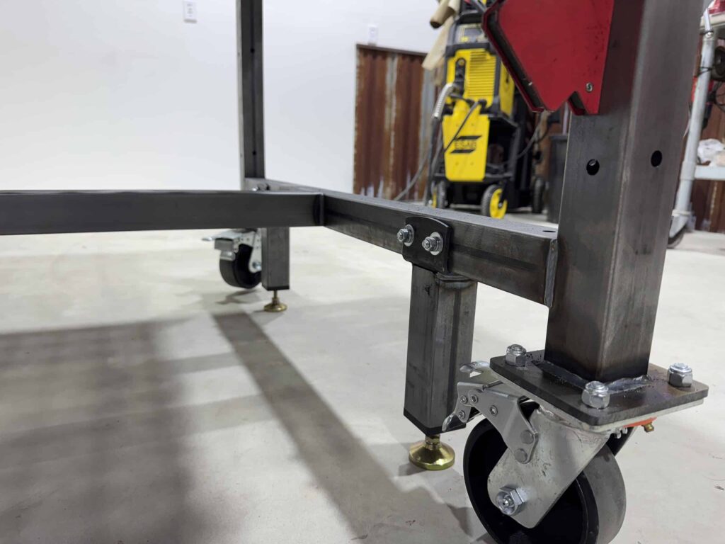 The kit is great. Everything fits together really well, and welds up clean. Two minor things: I wish the wall was a bit heavier, and I wish that the wheels which came with the kit were all swivels. Maybe the swivel wheel thing is something that could be specified in the future? As in, “Hey, I’m cool with two swivels and two fixed” vs. “I want all the swivels!”