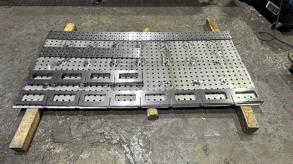 As you might guess, fabricating a huge table with precision requires extraordinary effort and a lot of practice. But we also augment our fabricator’s experience with the best tools available. In addition to using 142 bolts, 132 feet of threaded rod, 63 fixturing plates and making hundreds welds – we also fabricate all of our table on a heavy duty milled reference surface!
