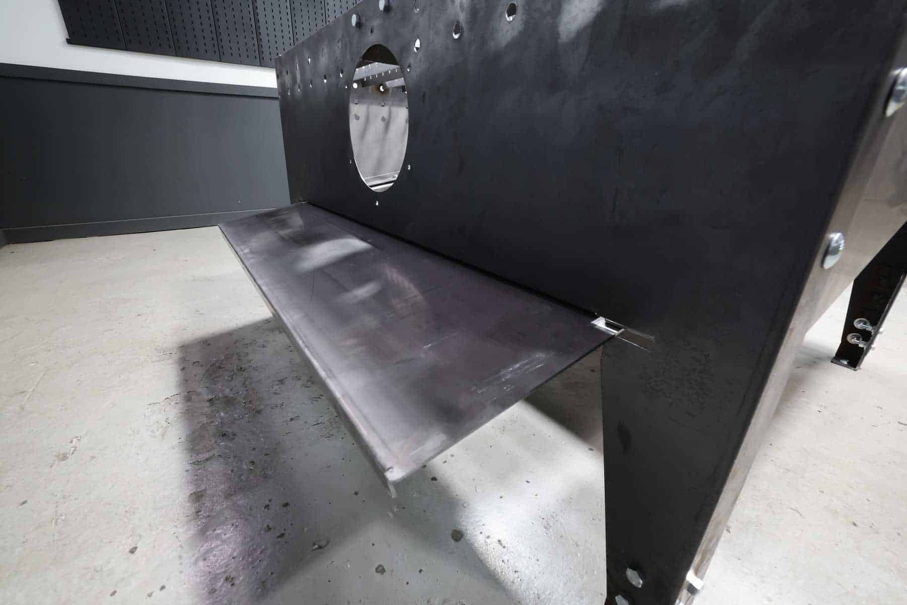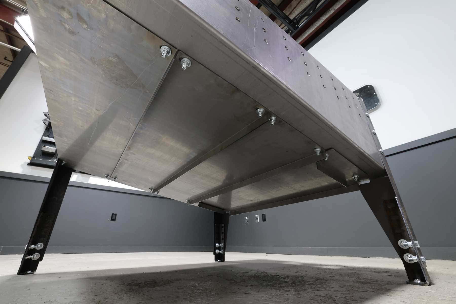 The standard model has long sides that are formed from 10ga steel, with end panels that are formed from 14ga. This version of the table weights nearly 700 pounds.