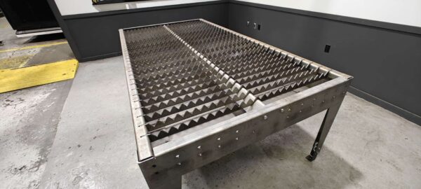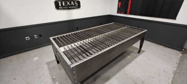 The heavy duty version of the table has 3/16″ formed plate all the way around, and weighs over 1,000 pounds. You may with to choose this version if you are dealing with particularly heavy material, or if you are wanting to minimize movement with a CNC application.