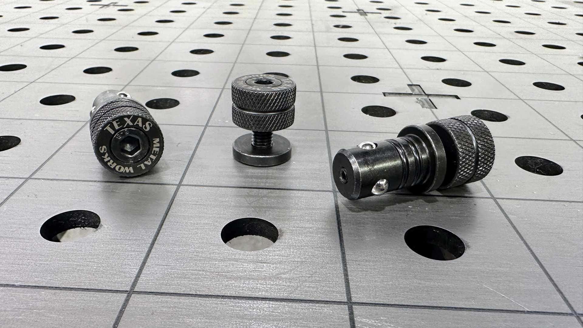 We consider our Clamps w/ T-Handles the single most important accessory for our fabrication tables. These clamps can drop in any hole on our table or other fixtures, and quickly clamp down with hundreds of pounds of holding force.