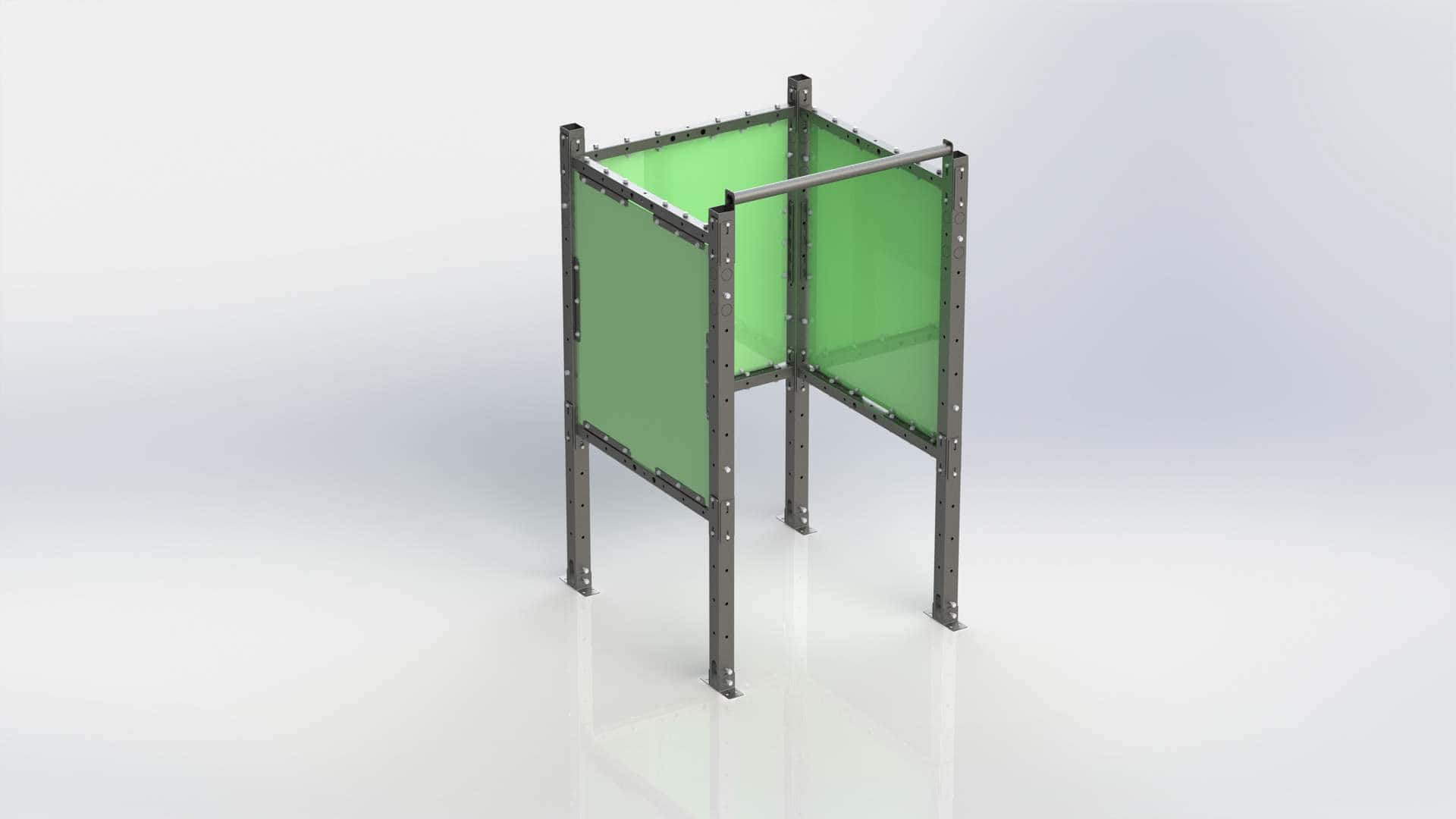 In a nutshell, our welding booths are assembled on site from bolt together components that are endlessly reconfigurable. There are three primary components to our system: