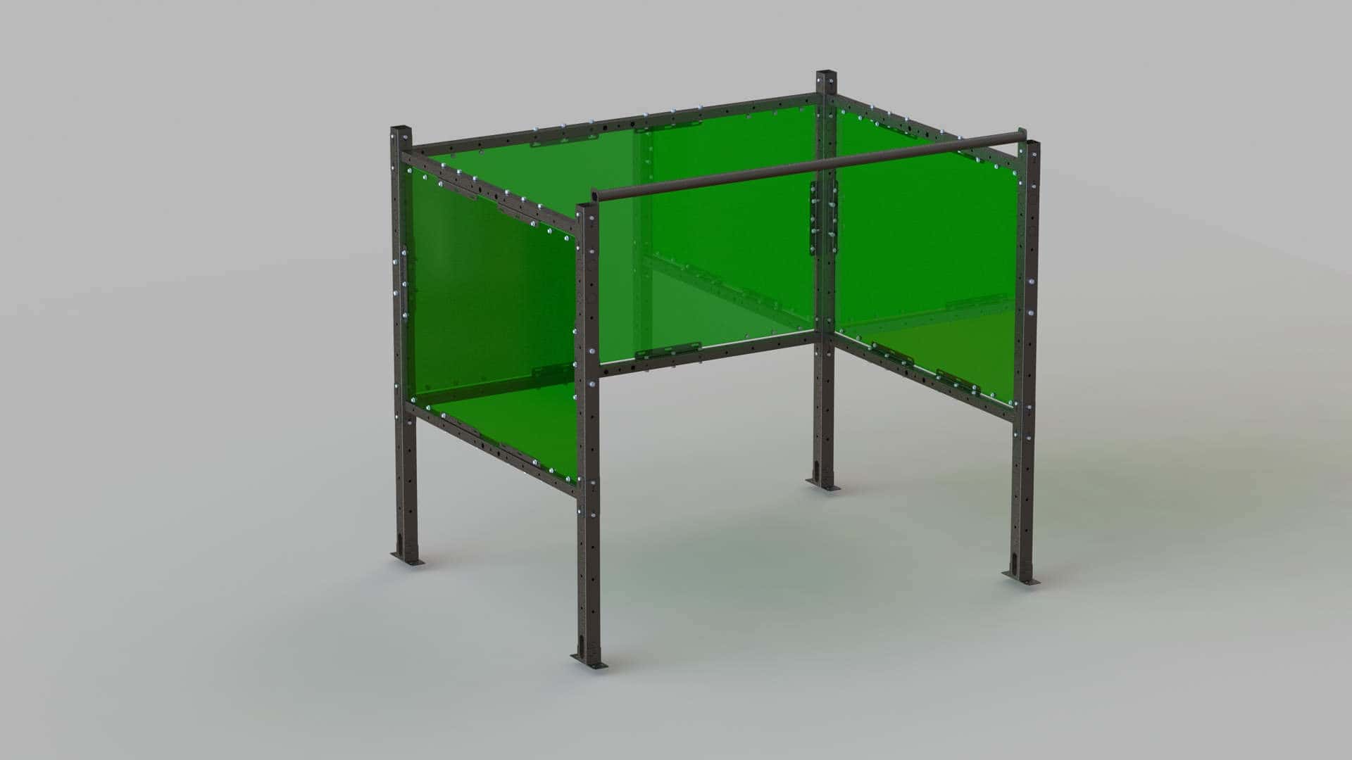 In a nutshell, our welding booths are assembled on site from bolt together components that are endlessly reconfigurable. There are three primary components to our system: