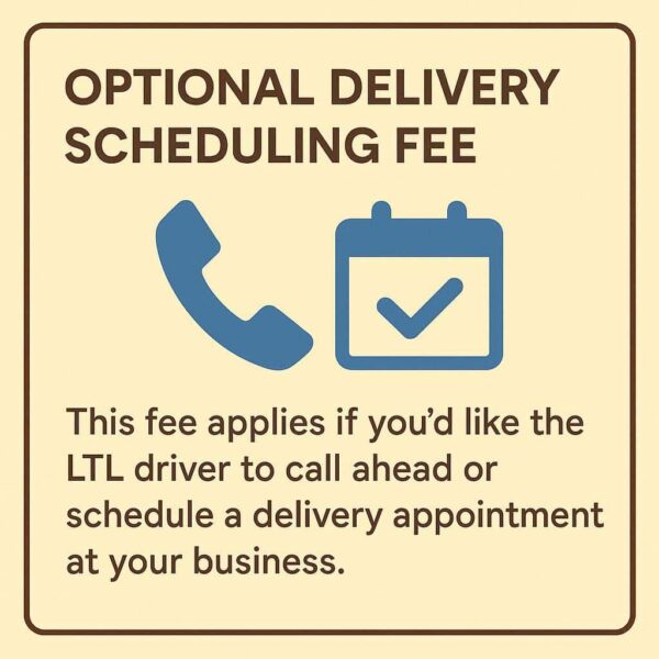 Of course, this is an optional, non-refundable service. Once we book the LTL carrier, there is no refunding the fee — as the carrier will not credit unused services.