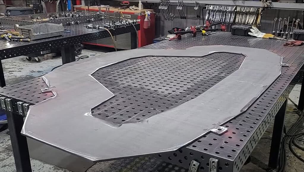 The assembly and welding took more than a week, followed by nearly two weeks of surface grinding to smooth and blend all the welds, resulting in a seamless and polished finish.
