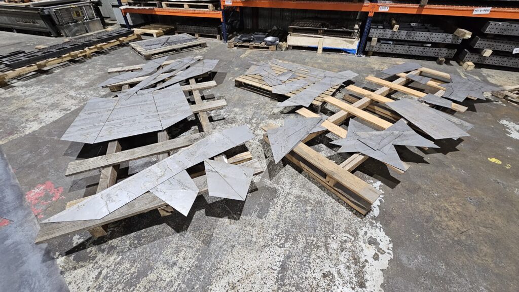 Once the design was complete, each of the panels had to be laser cut from sheet steel. The CNC laser required over 400 square feet of material to cut the 78 unique patterns that form the head.
