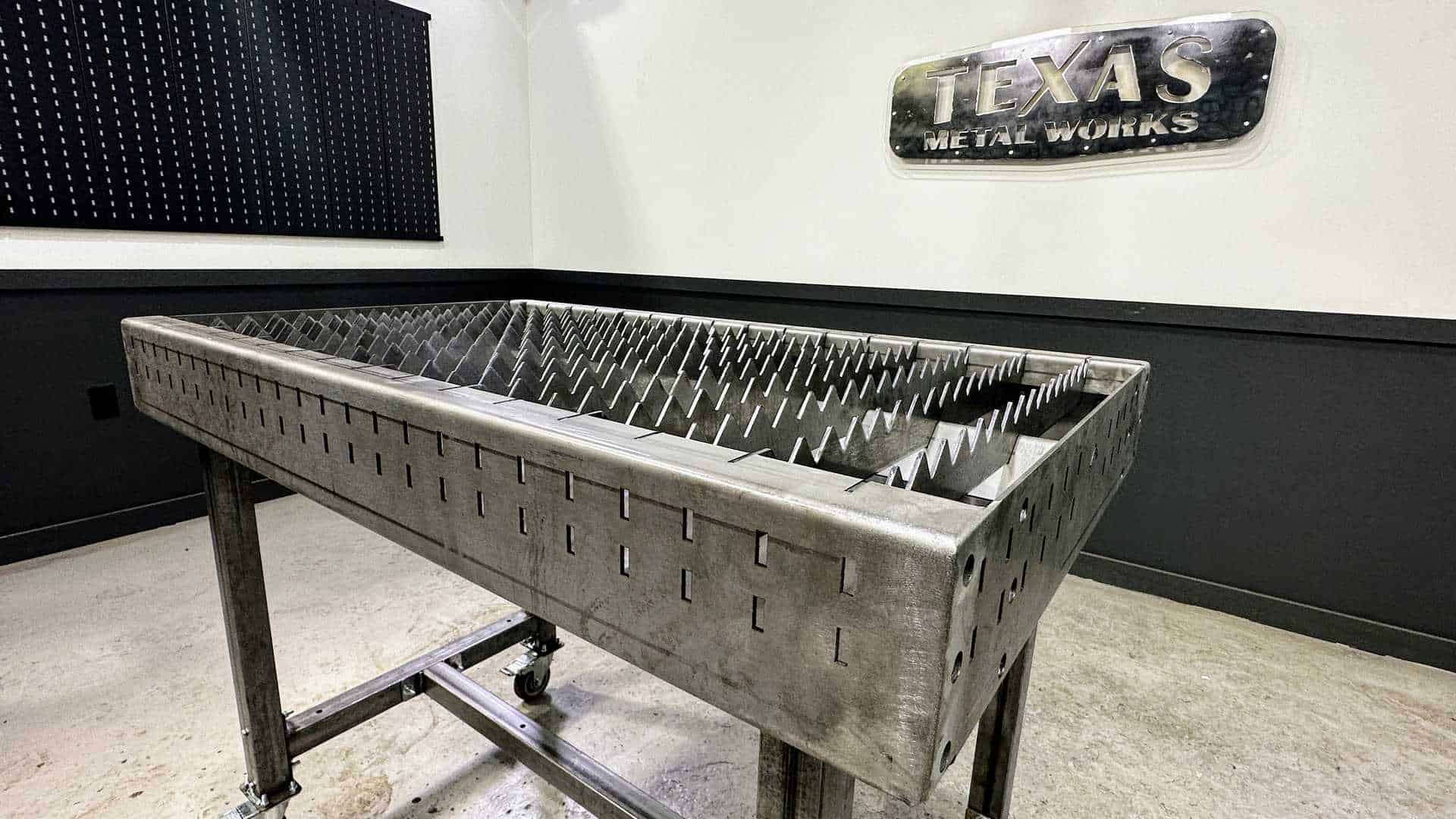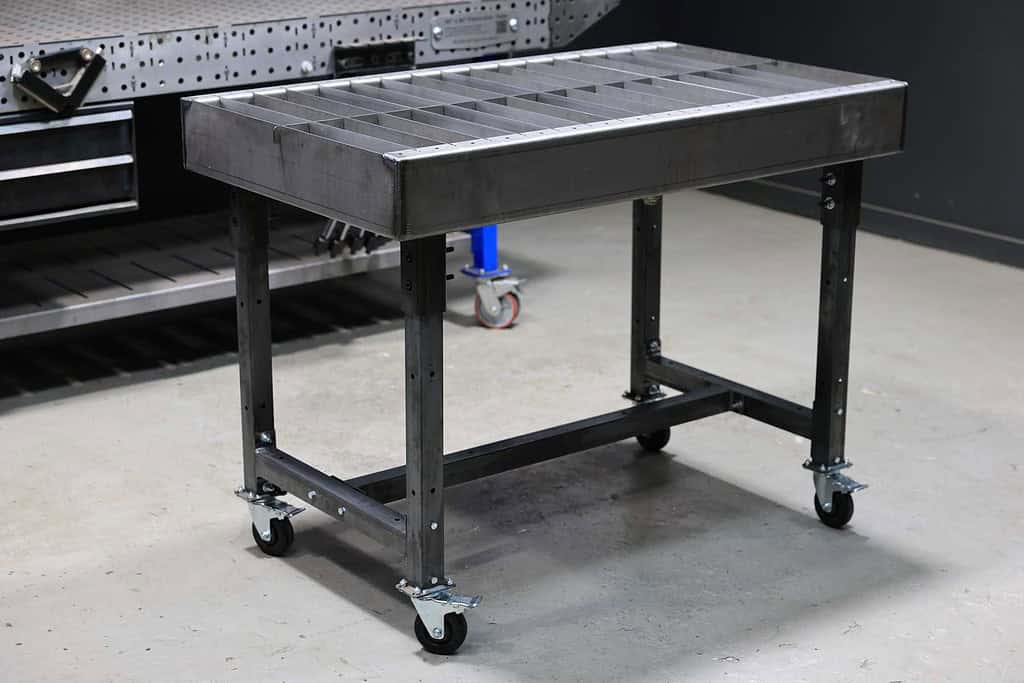 Our portable plasma cutting tables provide a stable surface capable of holding hundreds of pounds worth of material that also protects you from the downward-firing plasma arc and sparks that are just trying to set your legs on fire! (You’ll find our larger plasma cutting tables here.)
