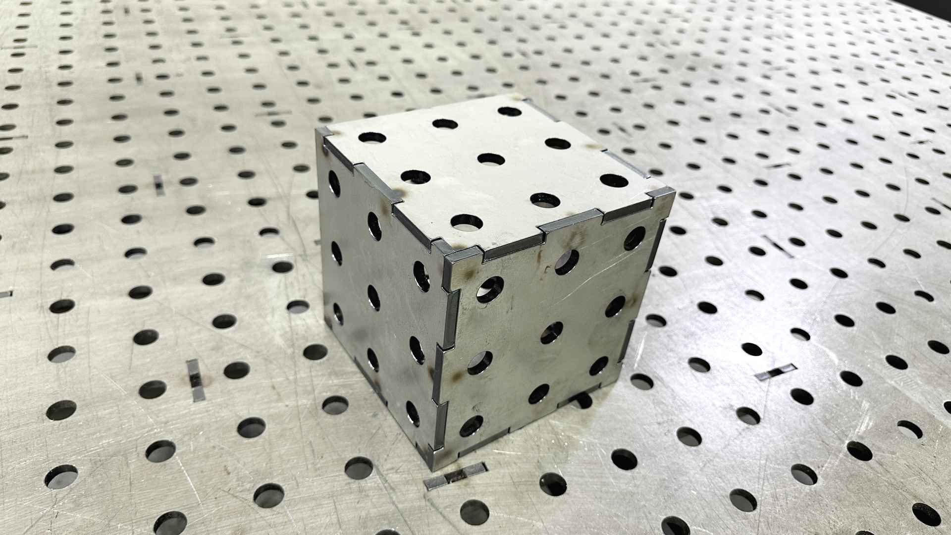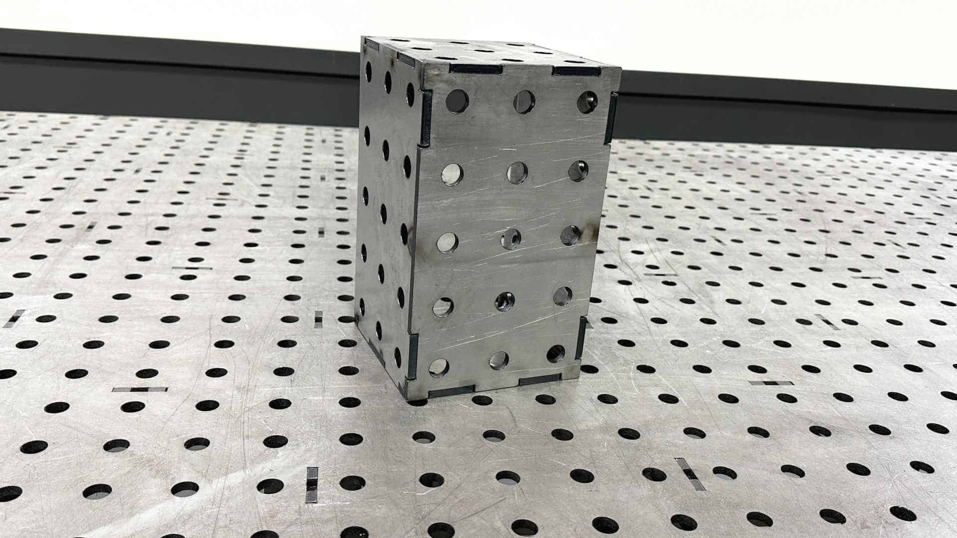 Expand your work area with our riser block family. Use your imagination and place these five-sided risers vertically or horizontally. Each 5/8” precision hole can be used with our clamps, stops, pliers and other tooling. Mount to the top of our table to create custom jigs for your projects. Join multiple blocks to create beams. Attach tableside to expand horizontally. Made from 1/4 A36 HRPO, these blocks are stout — don’t drop them on your toes!