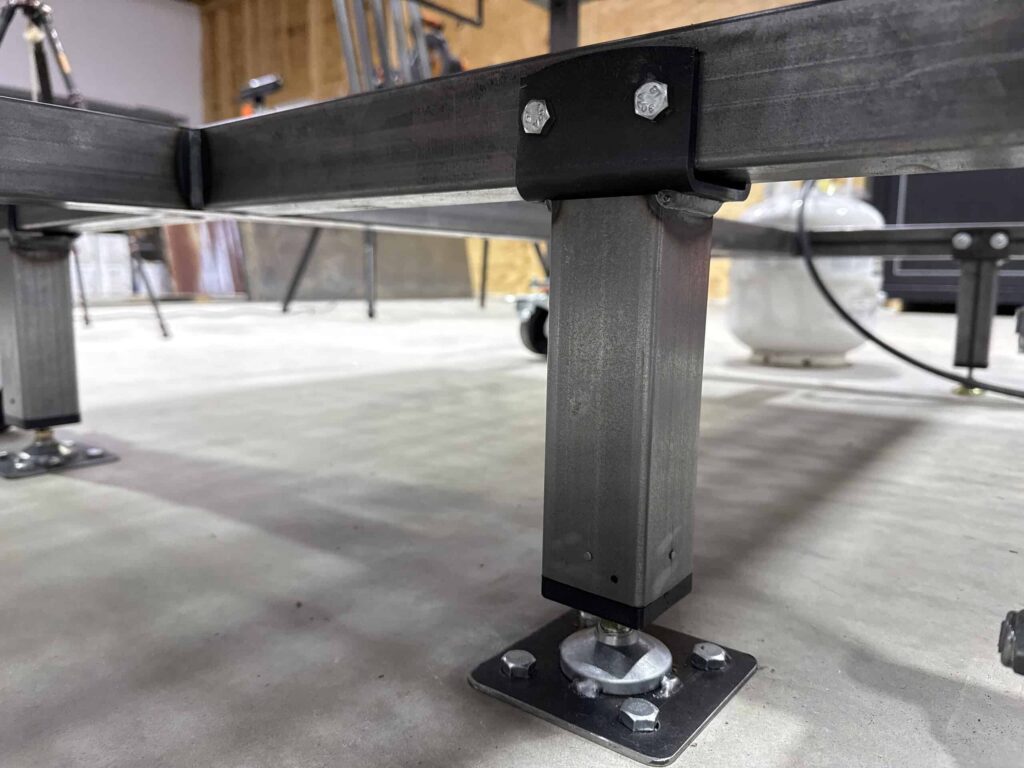 - 1 7/8″ wide x 3.125″ high swivel feet on 1/2″ studs, rated at 5000 lbs per foot