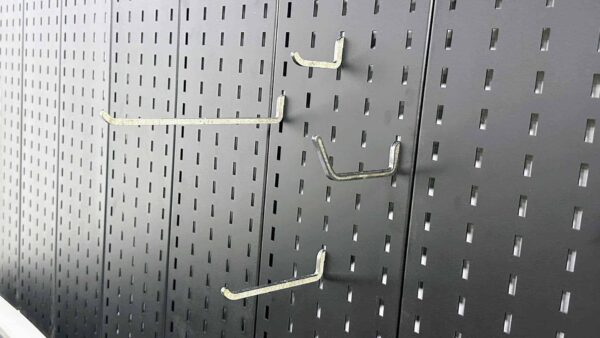 They will however work wonders when installed in our wall hanging super slot panels to hold things like chords, wrenches, or anything else you can come up with to hang on a straight hook.