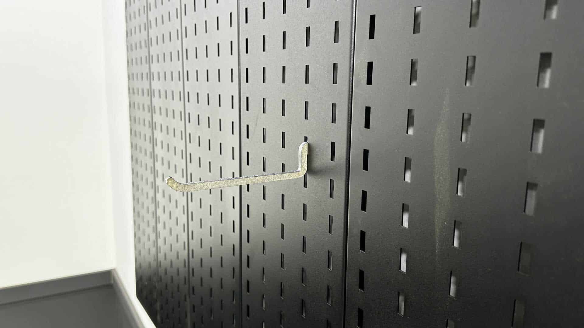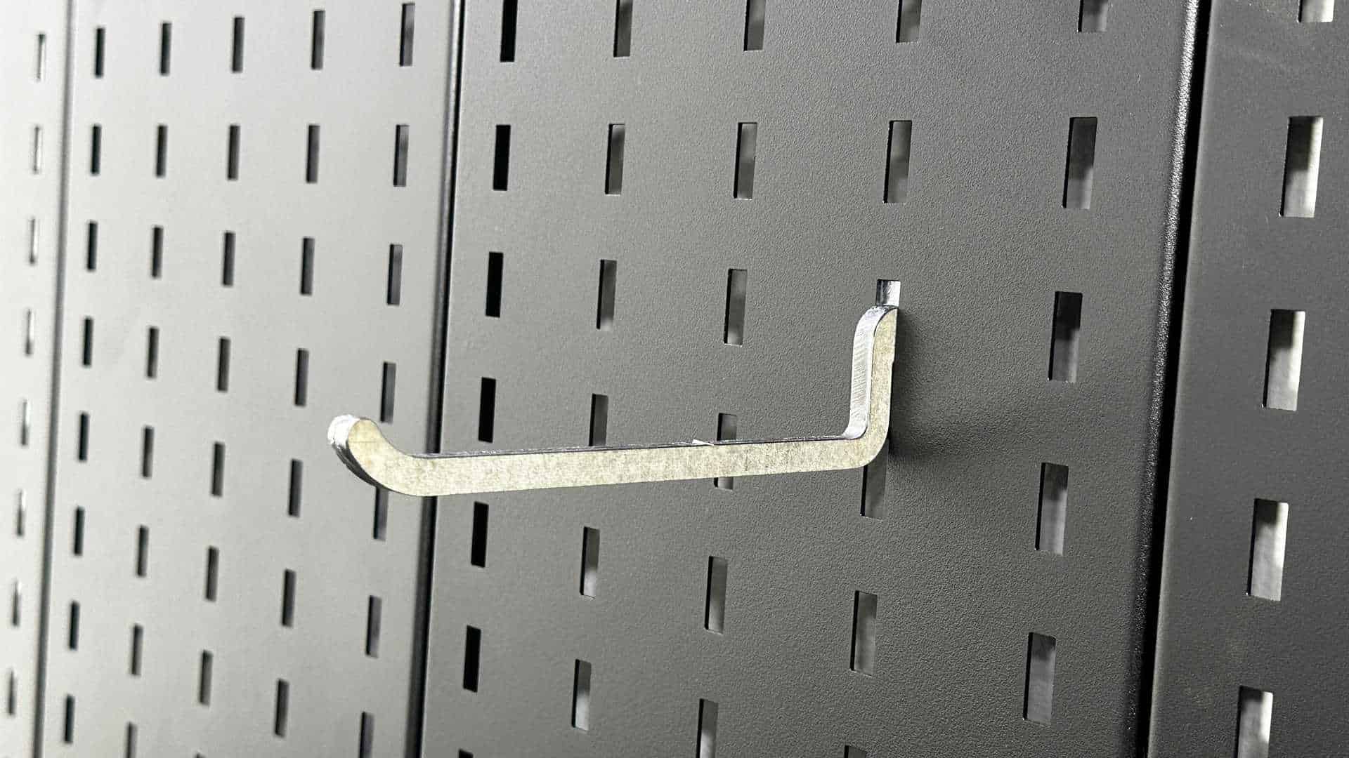 They will however work wonders when installed in our wall hanging super slot panels to hold things like chords, wrenches, or anything else you can come up with to hang on a straight hook.