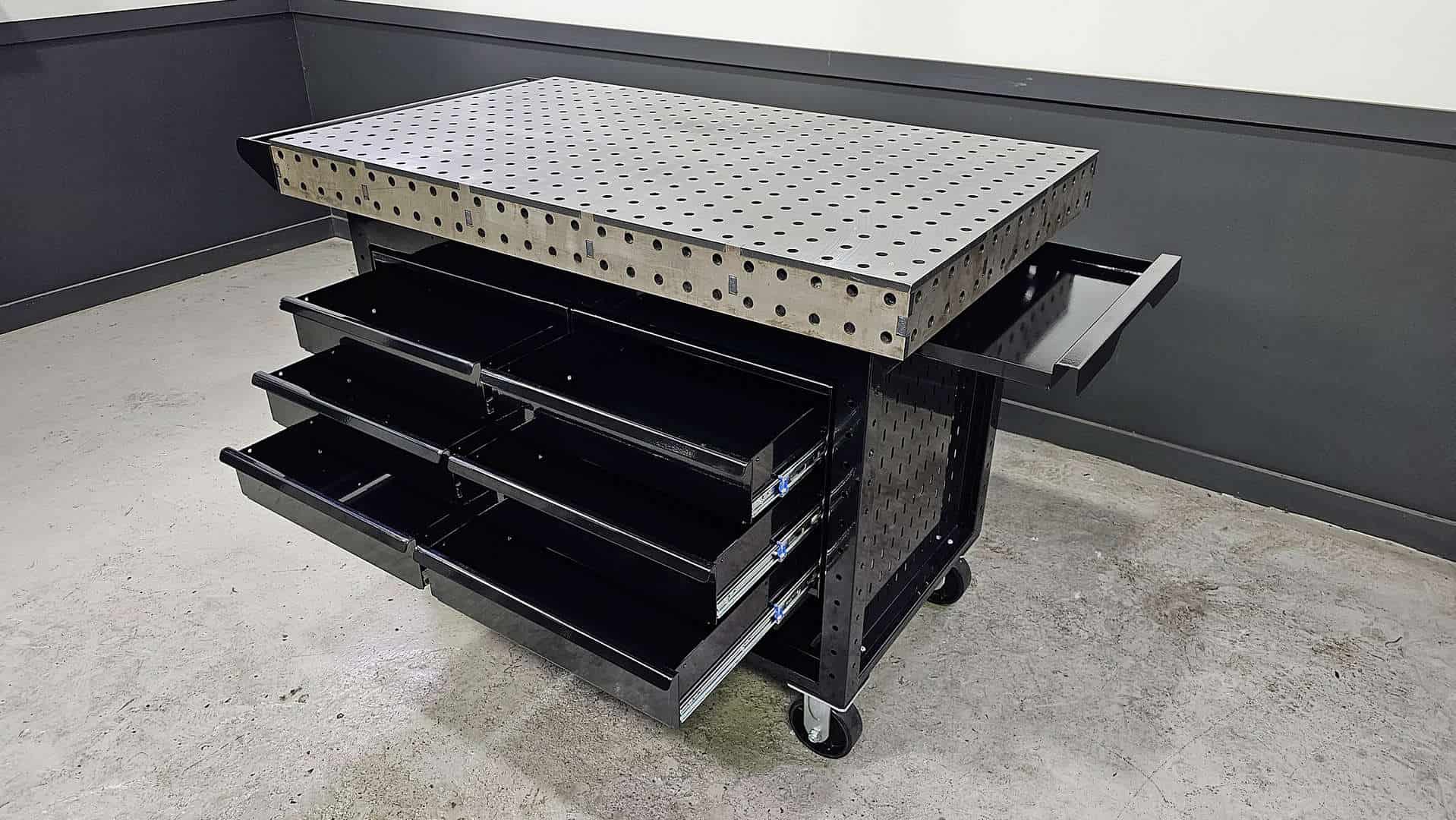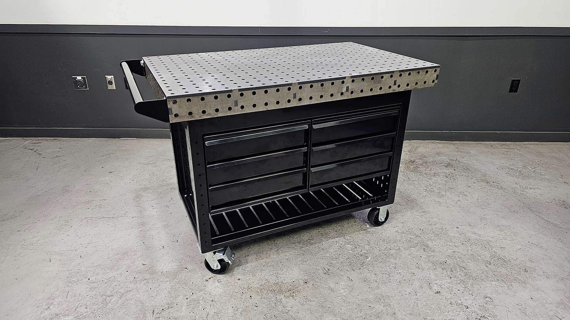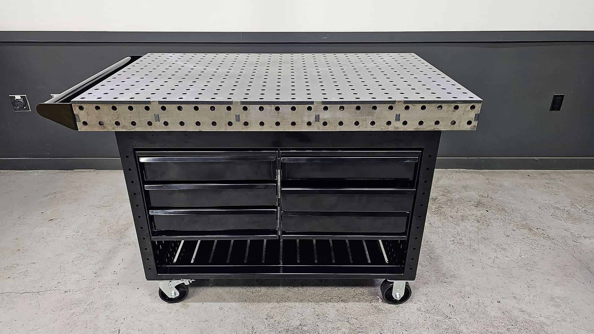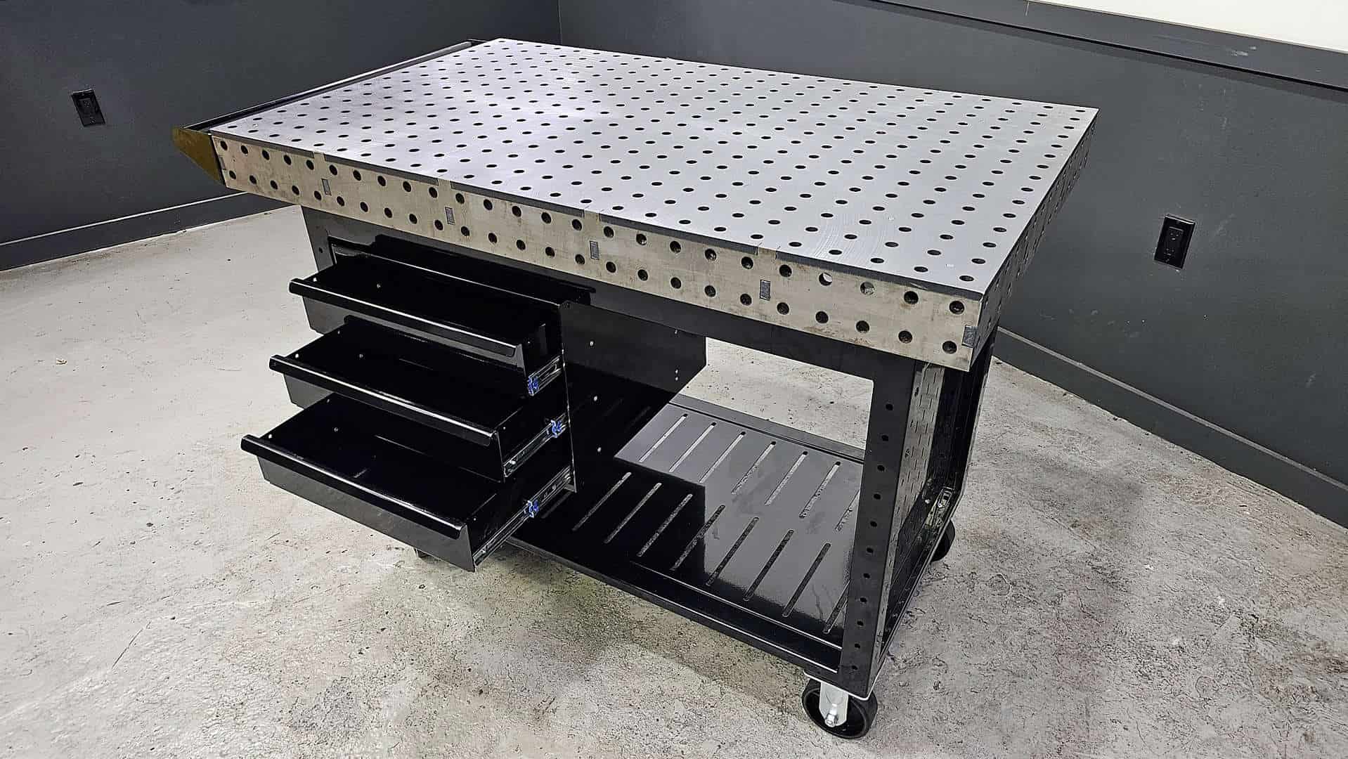 • In the Core configuration the Wolfram Weldstation comes fully fabricated with the top, debris drawers, legs, lower shelf, casters, and handle. There is no difference between any of these components and the other configurations other than additional accessories. In other words, if you start with the Core package, you can add or change the configuration later with simple bolt on accessories.