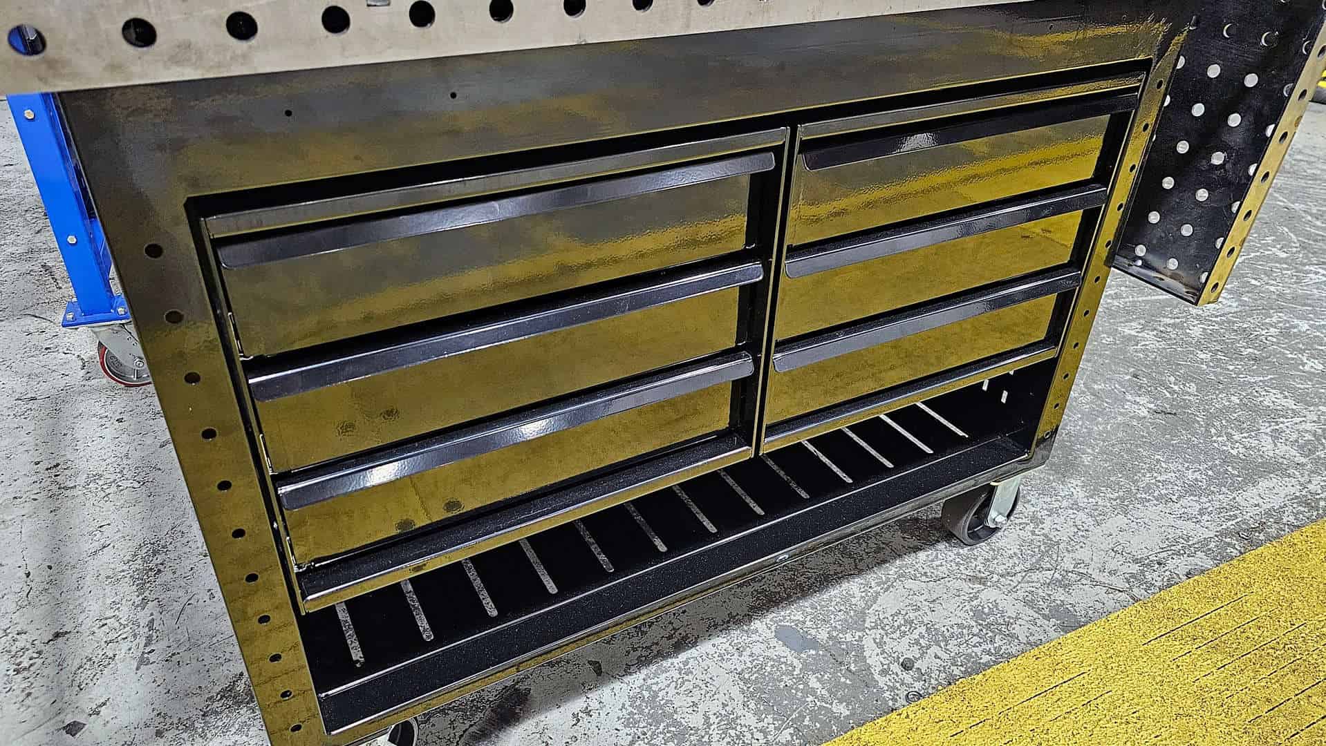 • Choosing a drawer unit for one side leaves the other side available to accommodate storage up to 20″ wide x 22″ high x 24″ deep – perfect for a welding machine.