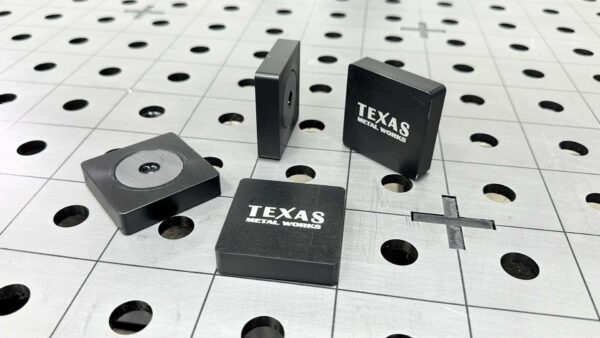 These buttons are pretty handy for elevating your workpiece when you need to get under it but don’t want to get on your knees. Put them on our tabletop, and they will stay in place, magnetized to where you want them. You can even stack them up to elevate in increments of 0.5 inches. This item is machined to 2″ x 2″ x 0.5″).
