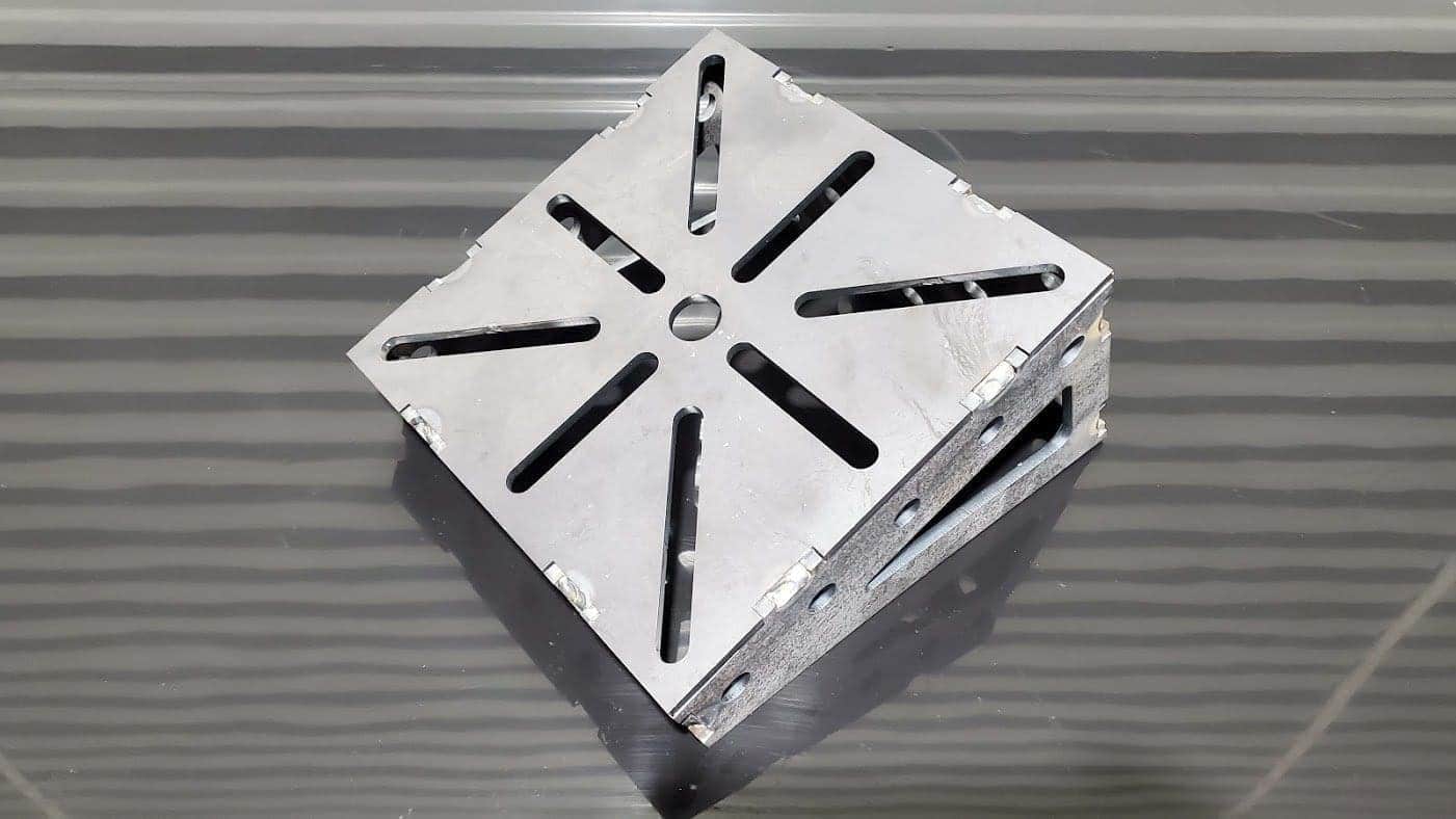 As with our welding tables, this vise mount is fabricated from 1/4″ thick A36 structural steel, and comes with mounting hardware to secure it to the table.