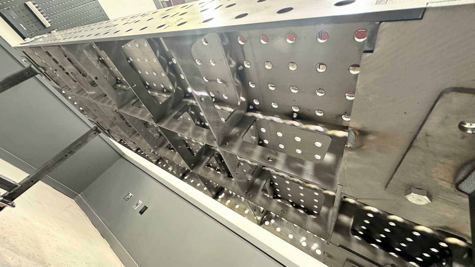 Only after securing the top to a reference surface do we add the ribs and sidewalls and secure them by bolting everything firmly in place before locking it in with hundreds of weld points.
