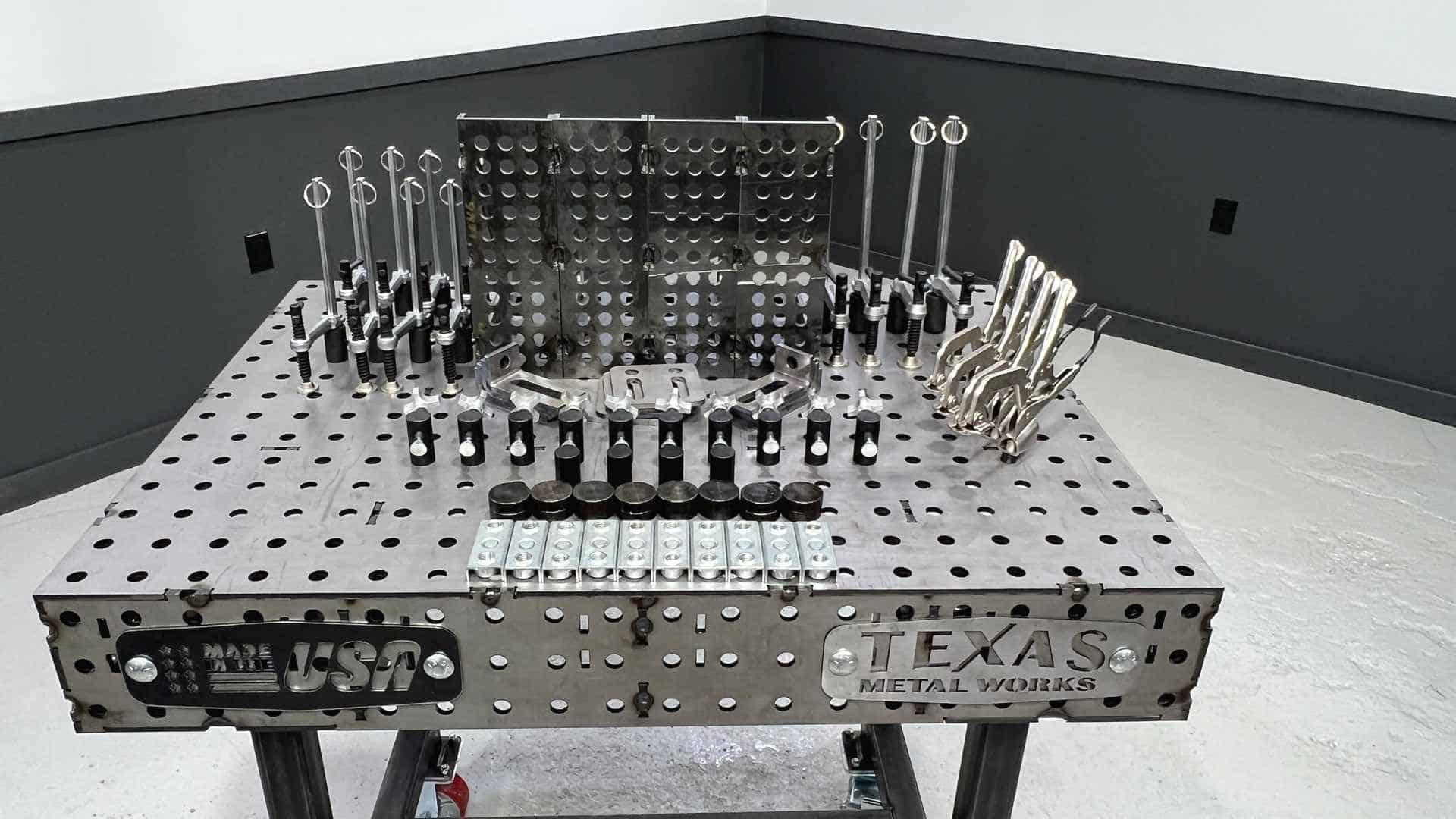 Texas Metal Works offers fully fabricated tables shipped FREE – saving you time, hassle, and money! Our 30″ x 40″ welding tables offer over 11 square feet of surface area, covered by standard laser cut 5/8″ / 16mm fixturing holes.