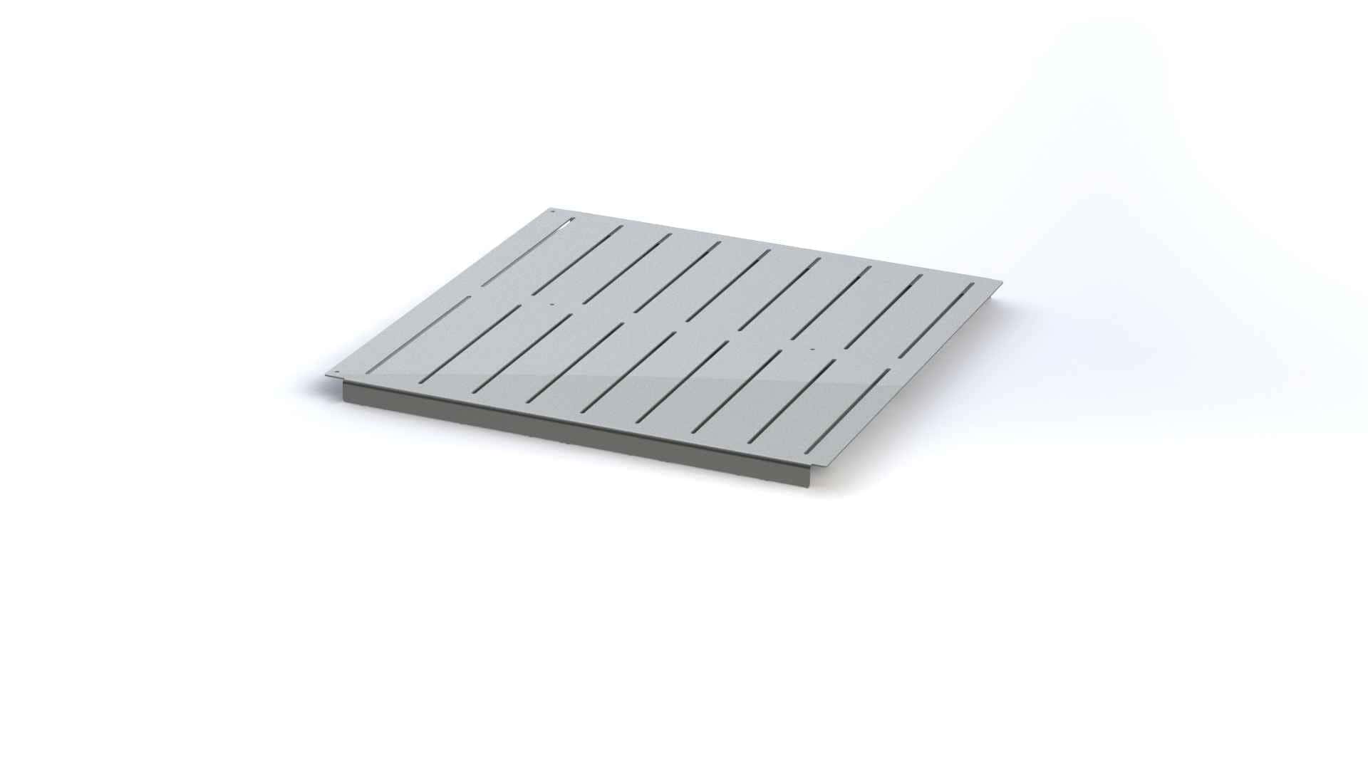 Made exclusively for our 60″ x 100″ welding table, this 10 ga base shelf has a total 36 precision CNC cut slots (21″) across two panels and multiple pre-drilled holes for mounting to the table’s cross braces. The two shelves share the middle cross bar and have two bends across their broadsides that drop 2″ to strengthen the cart and base shelf. Drop the shelves onto their table’s 2″ tubular base and you’re ready to go. For added stability, use the holes to screw the top to the cross braces or weld the base in place.