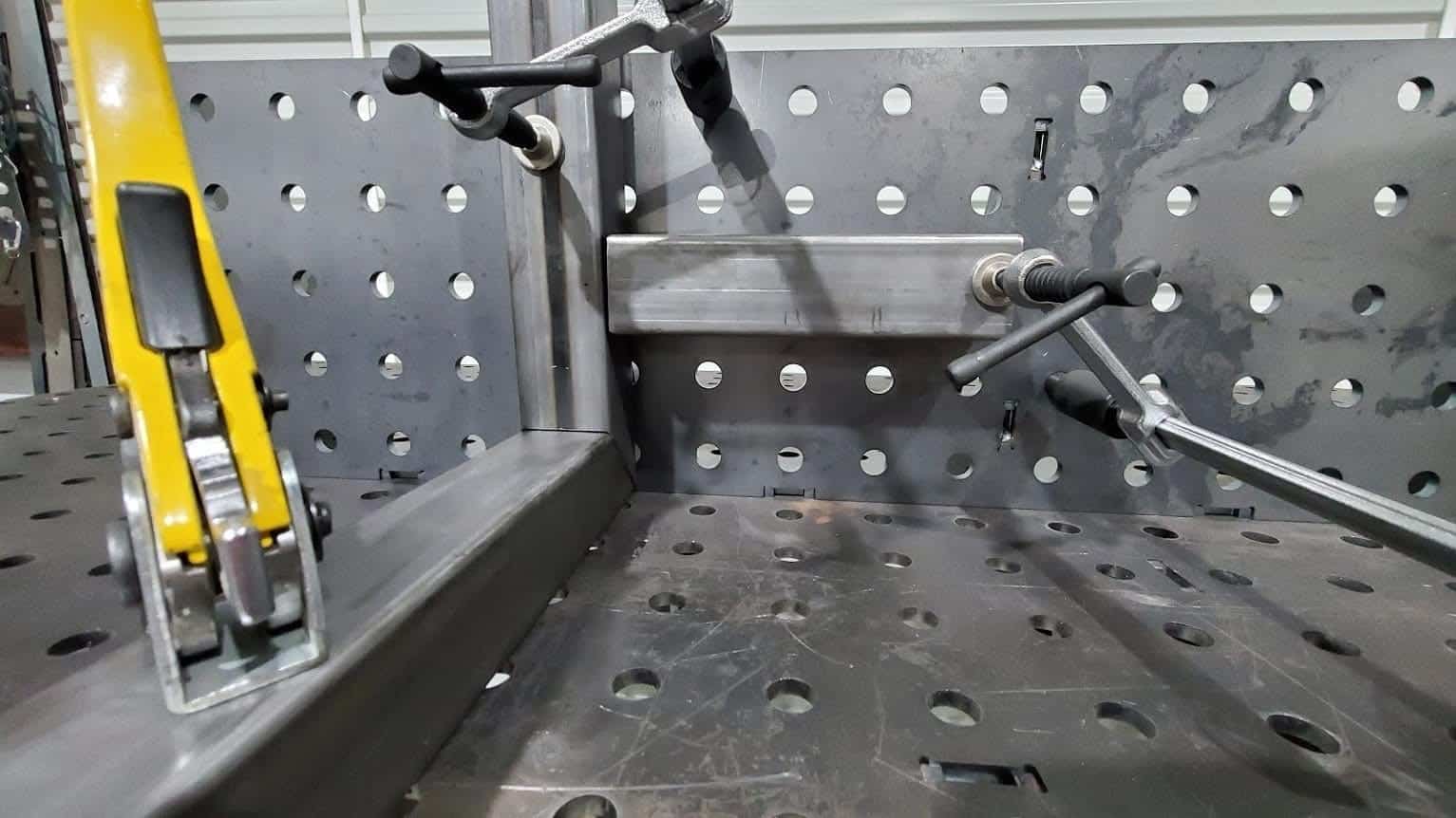The extensions can also be used as full-length (or width) 90-degree squares for fabricating things that require precision angles. When used in combination with our Fab Squares it’s possible, for example, to perfectly fixture all of the legs for a table at perfect dual 90-degree angles.