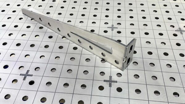Our fab squares are laser cut from A572-50 HRPO steel and ship fully assembled. Our 20″ x 4″ fab square is the perfect extension for overhanging materials and for vertical quick clamping! We built this lightweight tool (and priced it) to be accessible to budgets. It can be used along with c-clamps or InsertaClamps to fixture items at a 90-degree angle to the table surface.