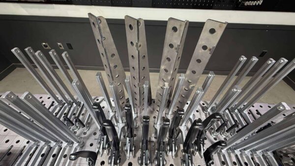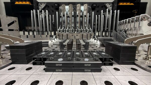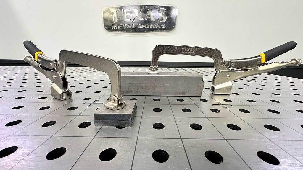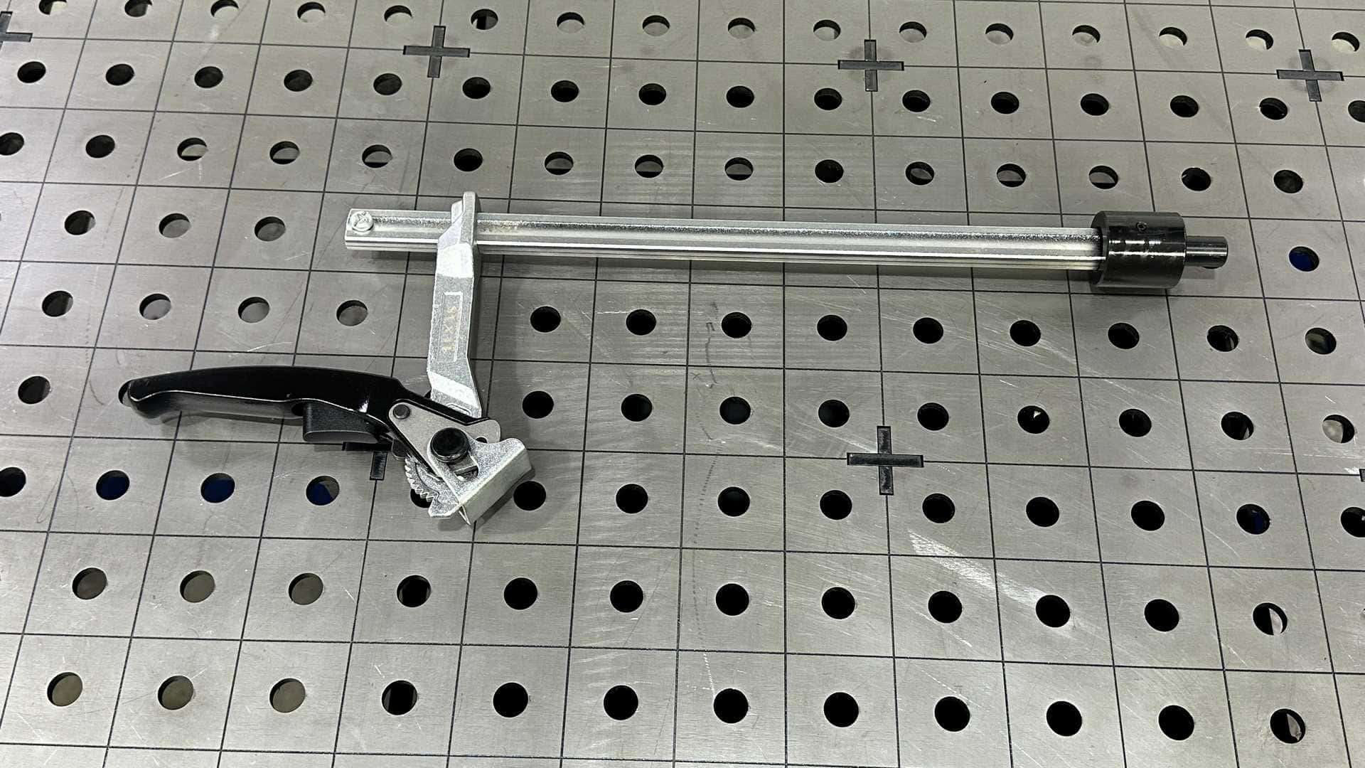 Our T-Handle Clamps, Ratchet Handle Clamps and 5″ Jaw Plier Clamps) are absolutely critical for the Ultimate Pack of tooling. These assorted clamps can drop into any hole on our table or other fixtures and quickly clamp down with hundreds of pounds of holding force.